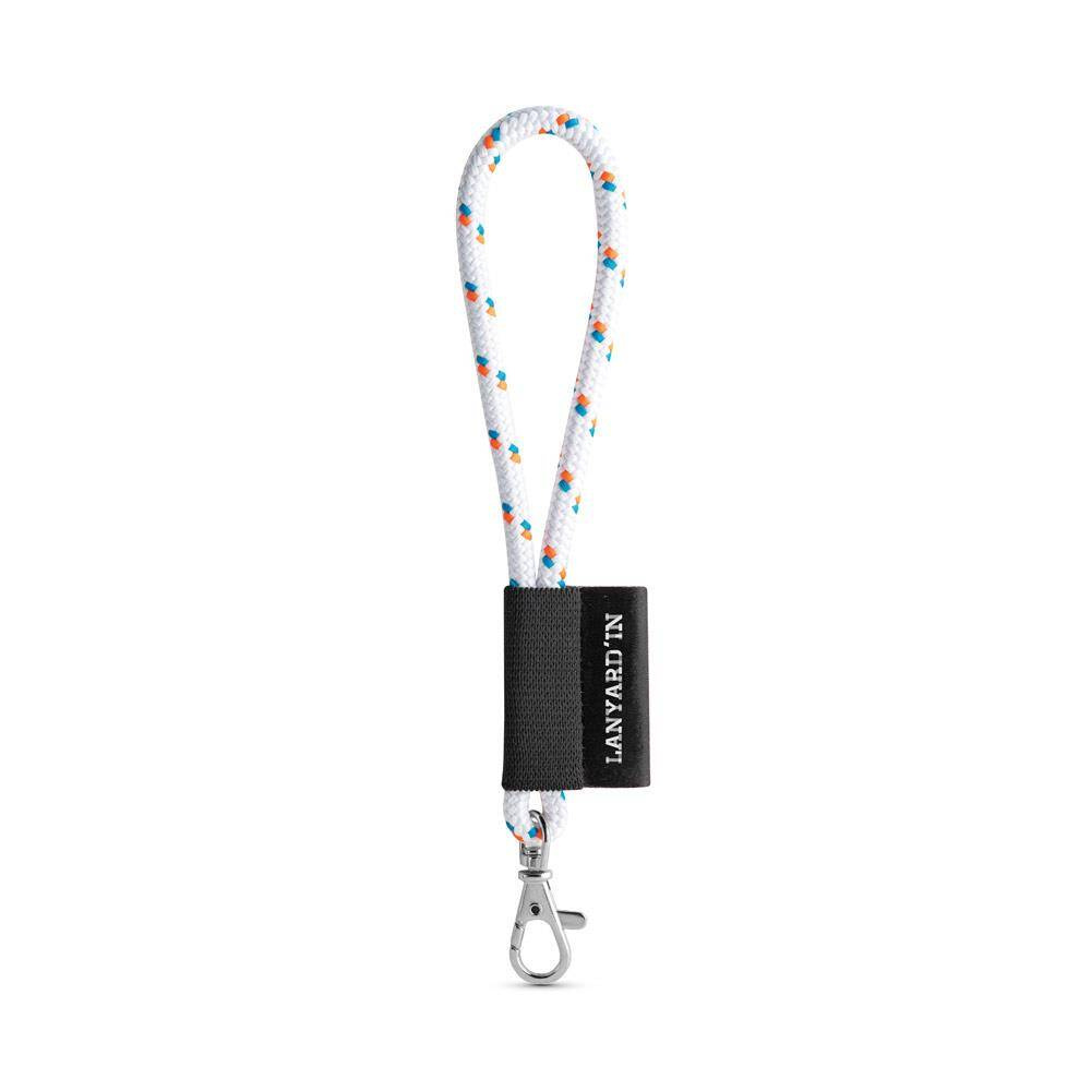 Personalizowana smycz Lanyard krótka nautic, wykonana z poliestru, w 12 standardowych kolorach dostępnych do personalizacji. Zawiera następujące akcesoria i dodatki: czarna gumka, Etykieta sublimacyjna 43 x 15 mm i mały karabińczyk 9 mm. ø7 x 150 mm