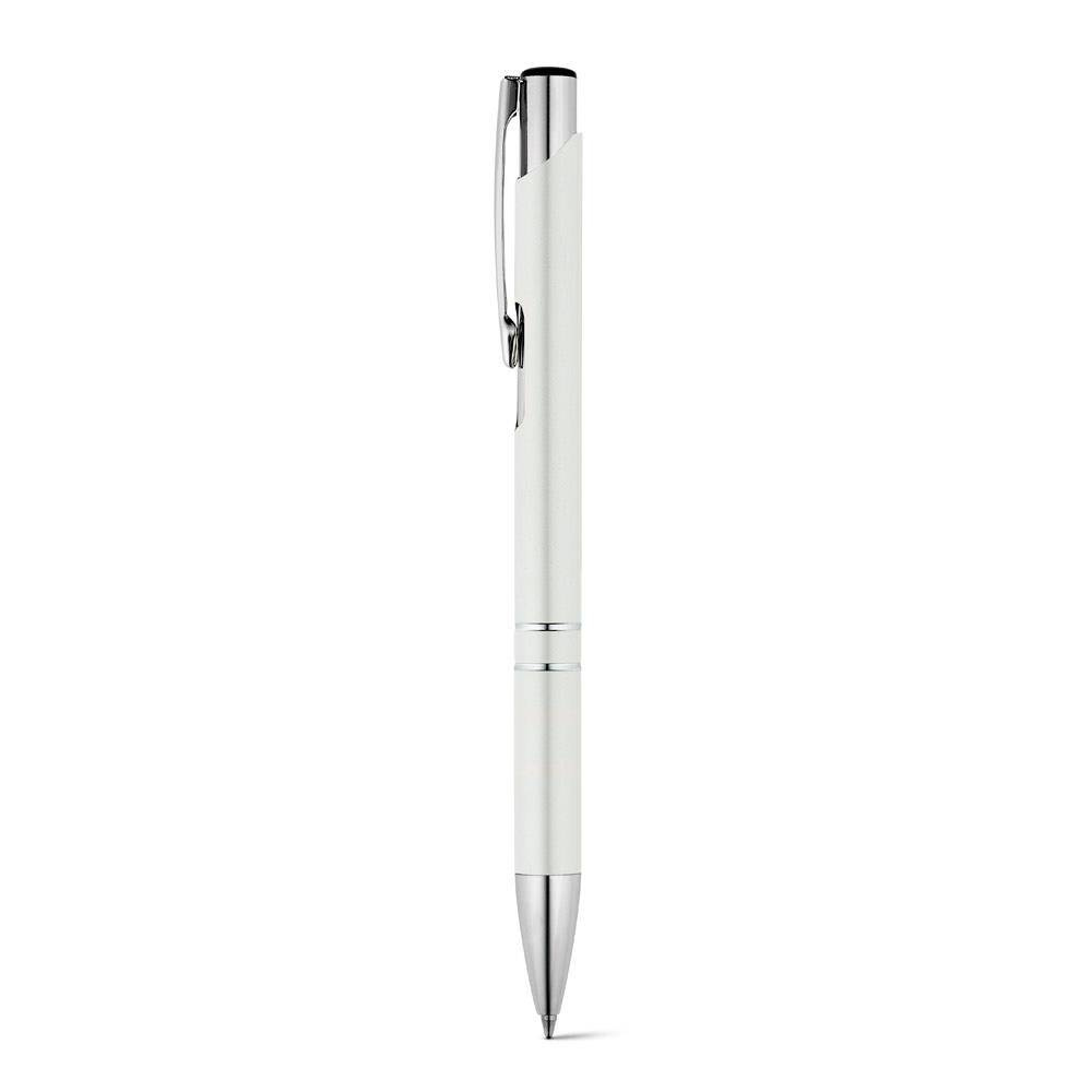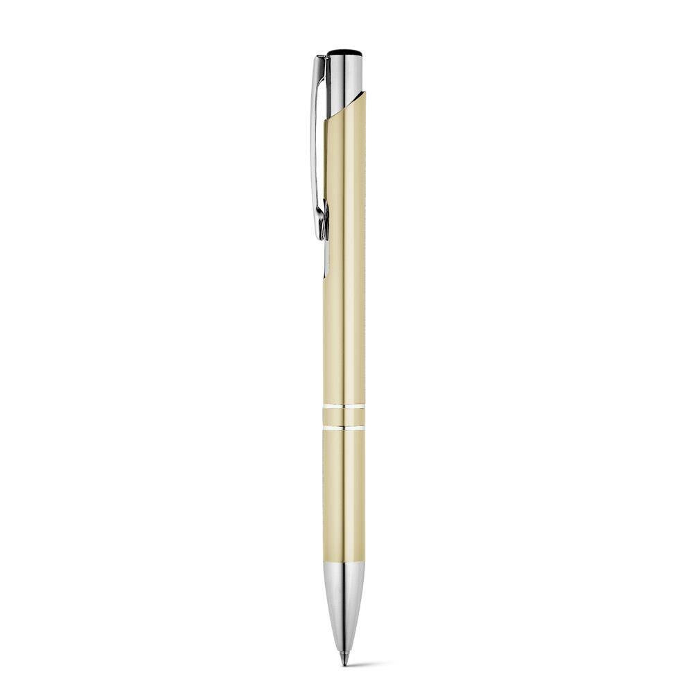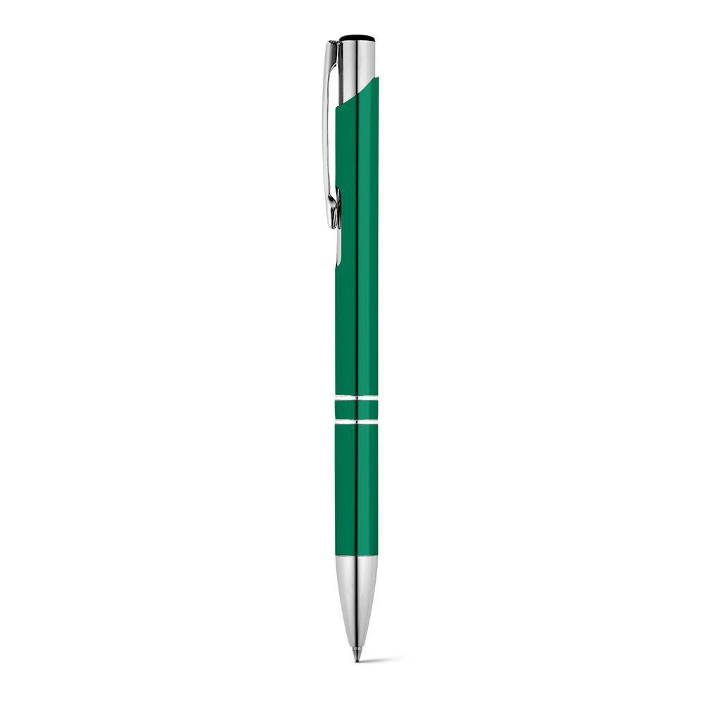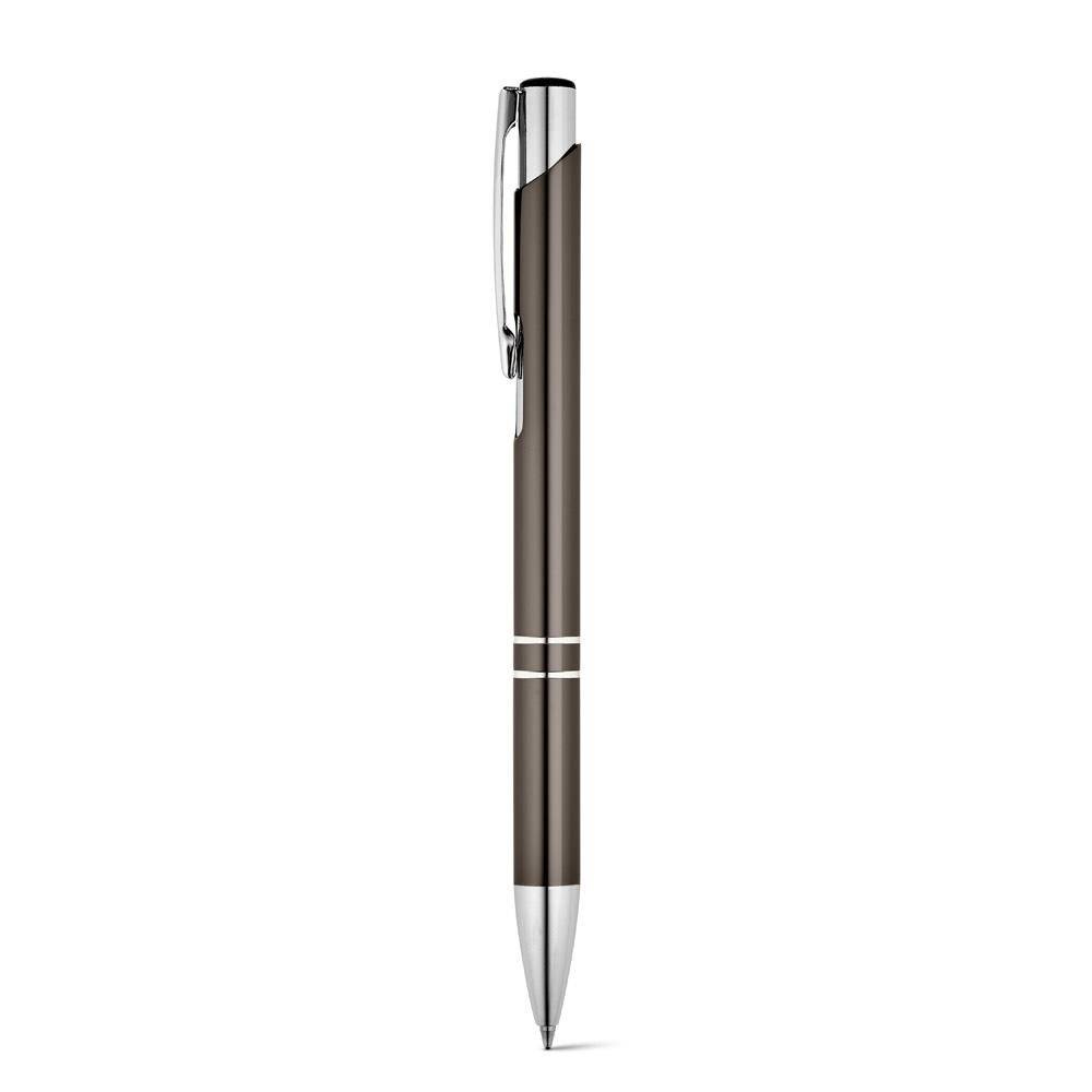 Aluminiowy długopis z klipem i metalicznym wykończeniem.