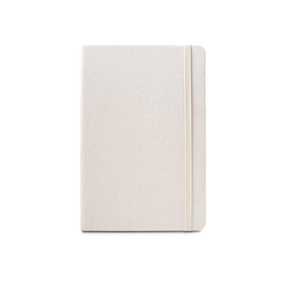 Notes A5 w twardej oprawie wykonanej z PET (50% rPET). Posiada 192 strony w linie w kolorze kości słoniowej ze zrównoważonej uprawy lasów, zakładkę ze wstążki, gumkę i wewnętrzną kieszeń. 140 x 210 mm