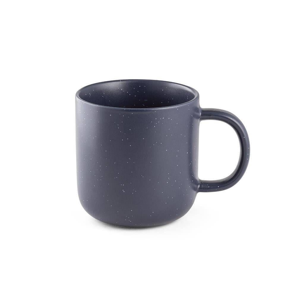 Kubek ceramiczny z matowym wykończeniem i nakrapianą powierzchnią kubka.