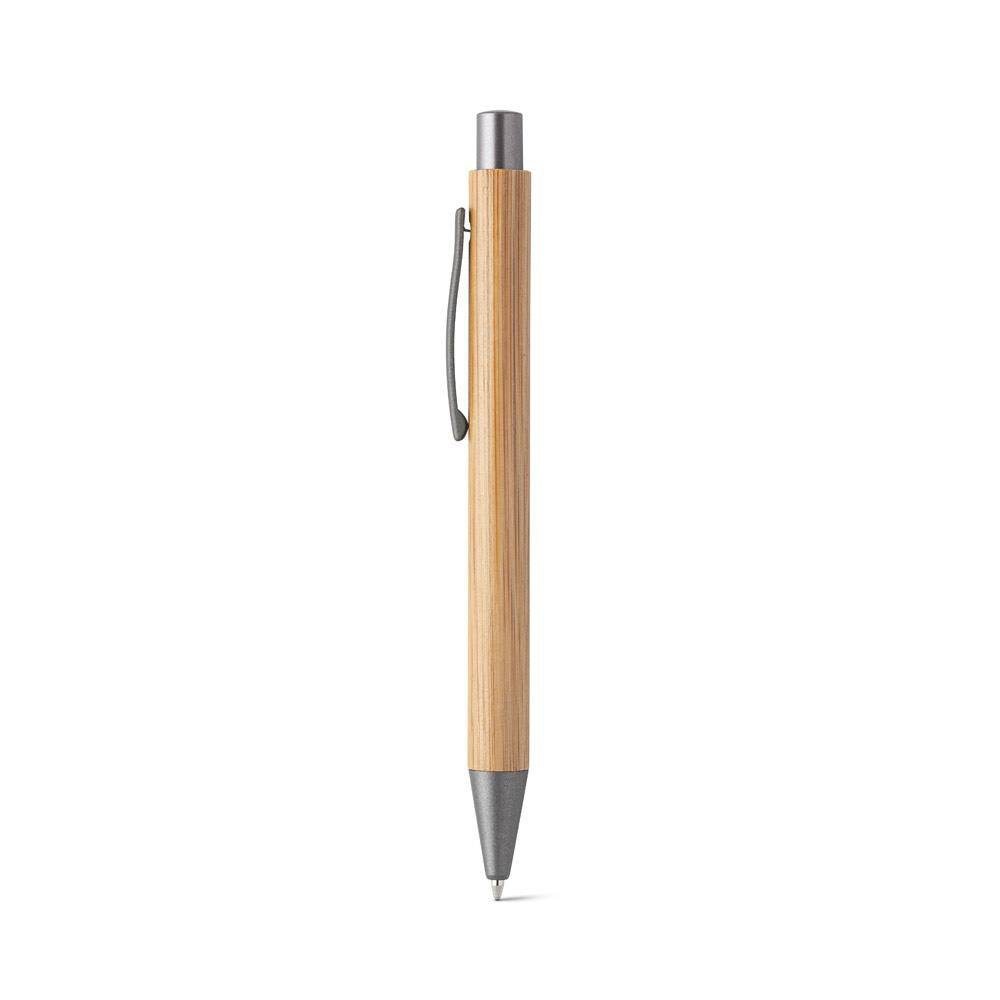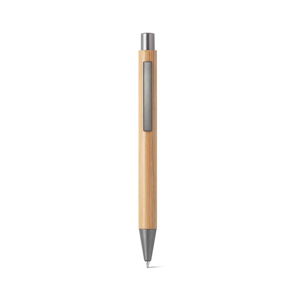 Długopis z bambusa z metalowym klipem. Niebieski tusz. Ø11 x 137 mm