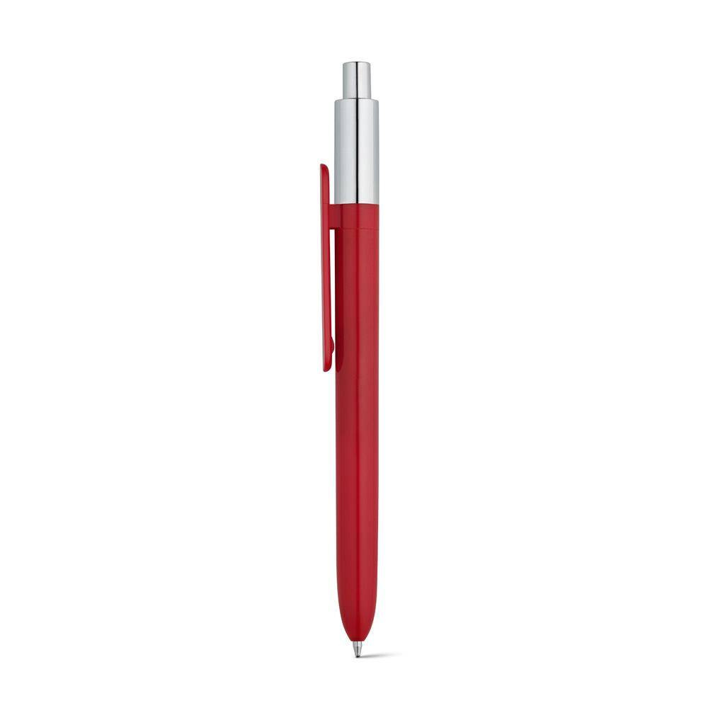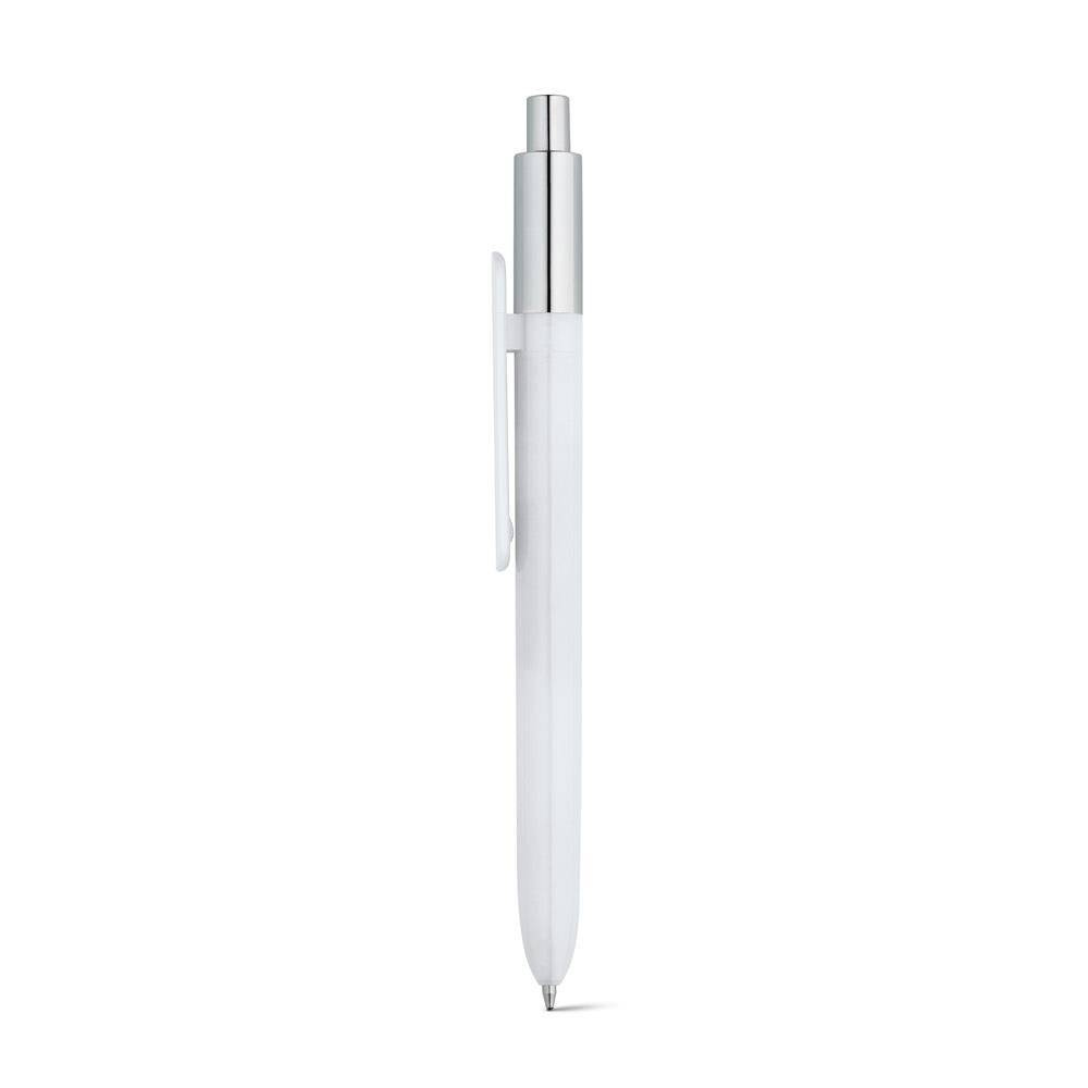 Długopis z ABS z błyszczącym wykończeniem i chromowaną końcówką.