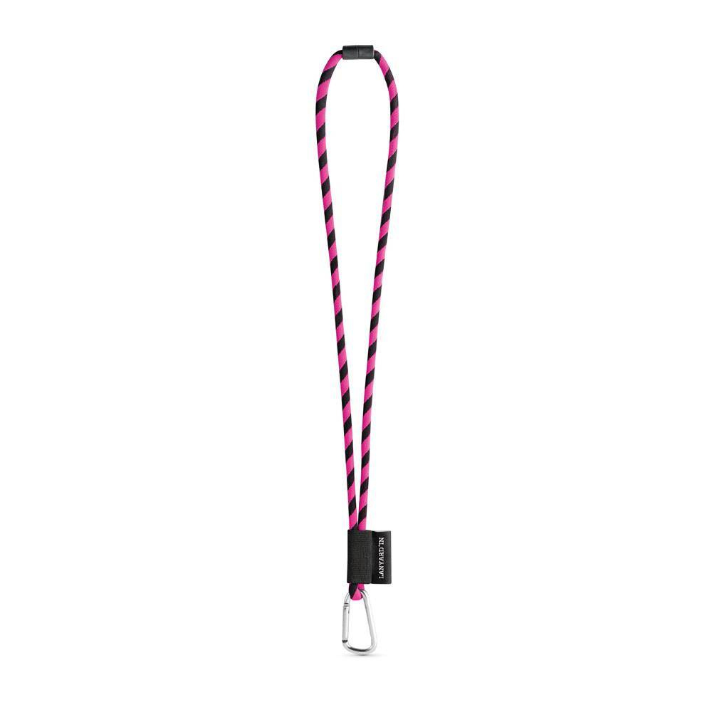 Personalizowana smycz Lanyard, długa smycz sznurkowa z poliamidu, w 17 standardowych kolorach dostępnych do personalizacji. Zawiera następujące akcesoria i dodatki: czarna gumka, Etykieta sublimacyjna 43 x 22 mm, Metalowy haczyk 55 mm i zamek bezpieczeństwa ø6 mm. ø7 x 470 mm