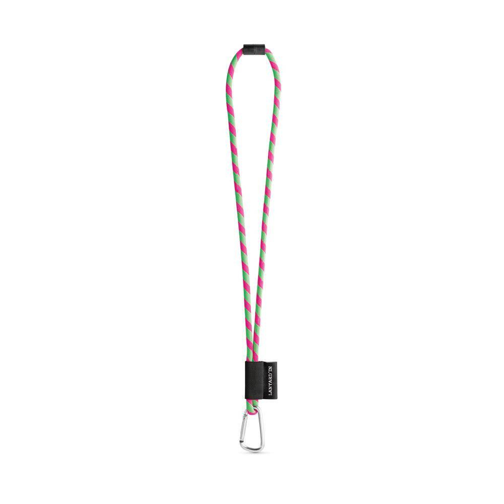 Personalizowana smycz Lanyard, długa smycz sznurkowa z poliamidu, w 17 standardowych kolorach dostępnych do personalizacji. Zawiera następujące akcesoria i dodatki: czarna gumka, Etykieta sublimacyjna 43 x 22 mm, Metalowy haczyk 55 mm i zamek bezpieczeństwa ø6 mm. ø7 x 470 mm