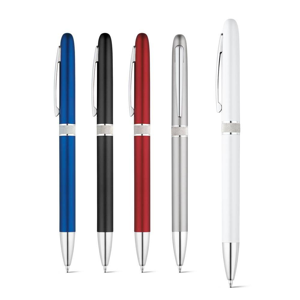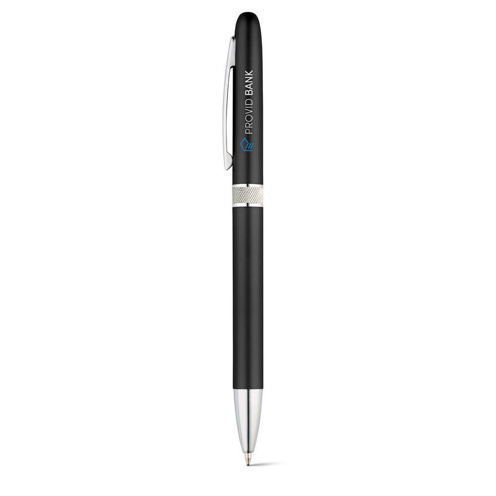 Długopis z mechanizmem obrotowym i metalowym klipsem.