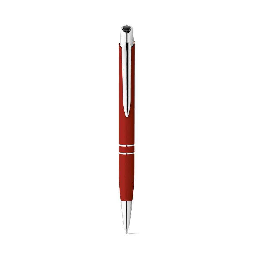 Aluminiowy długopis o gumowym wykończeniu i klipem.