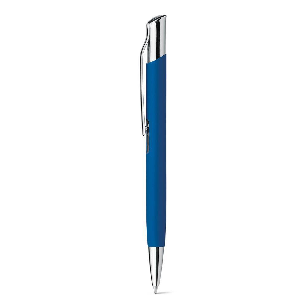 Aluminiowy długopis z gumowymi wykończeniami i klipem.