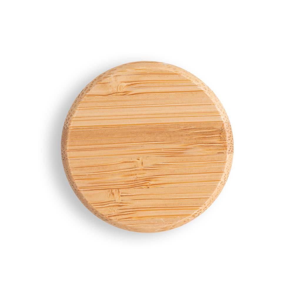 Aluminiowa butelka z bambusową pokrywką i matowym wykończeniem z brokatem. Pojemność do 550 mL. ø65 x 197 mm