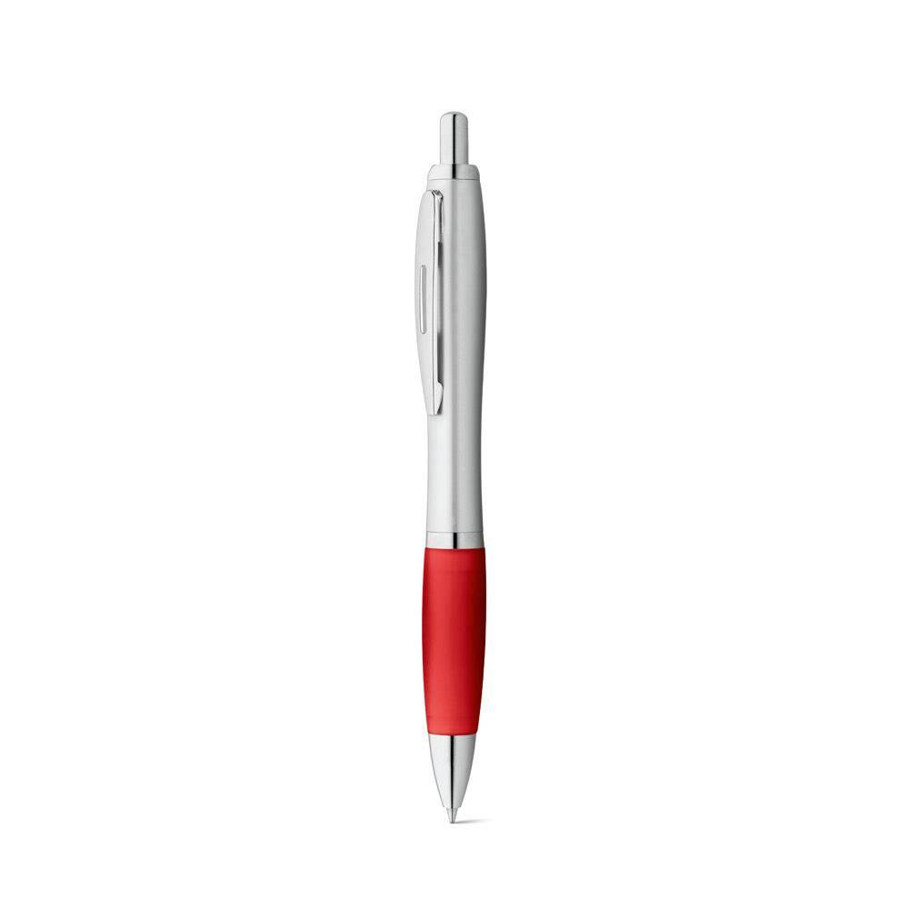 Długopis z metalowym klipem i kolorowym antypoślizgiem.