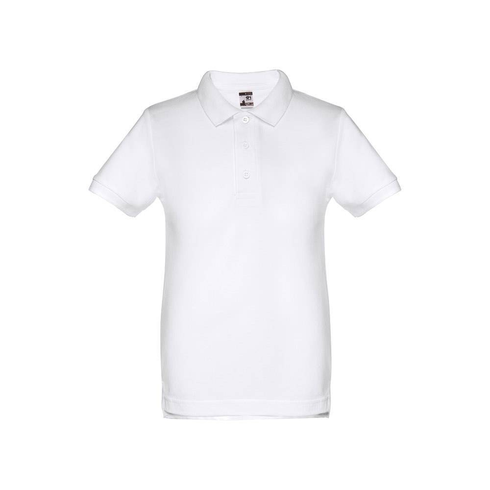 Dziecięca koszulka polo (unisex), ze 100% bawełny o splocie piqué (195 g/m²). Kołnierzyk i mankiety z prążkowanym wykończeniem. Kołnierzyk jest wzmocniony taśmą piqué. Z przodu przy kołnierzyku znajdują się 3 pasujące kolorystycznie guziki (dodatkowy guzik na wewnętrznym szwie). Zszywana po bokach, z małymi rozcięciami w szwach bocznych u dołu. Rozmiary: 2, 4, 6, 8, 10, 12