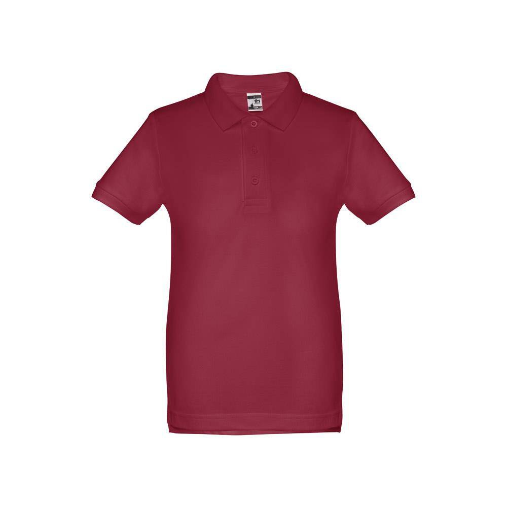 Dziecięca koszulka polo (unisex), ze 100% bawełny o splocie piqué (195 g/m²). Kołnierzyk i mankiety z prążkowanym wykończeniem. Kołnierzyk jest wzmocniony taśmą piqué. Z przodu przy kołnierzyku znajdują się 3 pasujące kolorystycznie guziki (dodatkowy guzik na wewnętrznym szwie). Zszywana po bokach, z małymi rozcięciami w szwach bocznych u dołu. Rozmiary: 2, 4, 6, 8, 10, 12