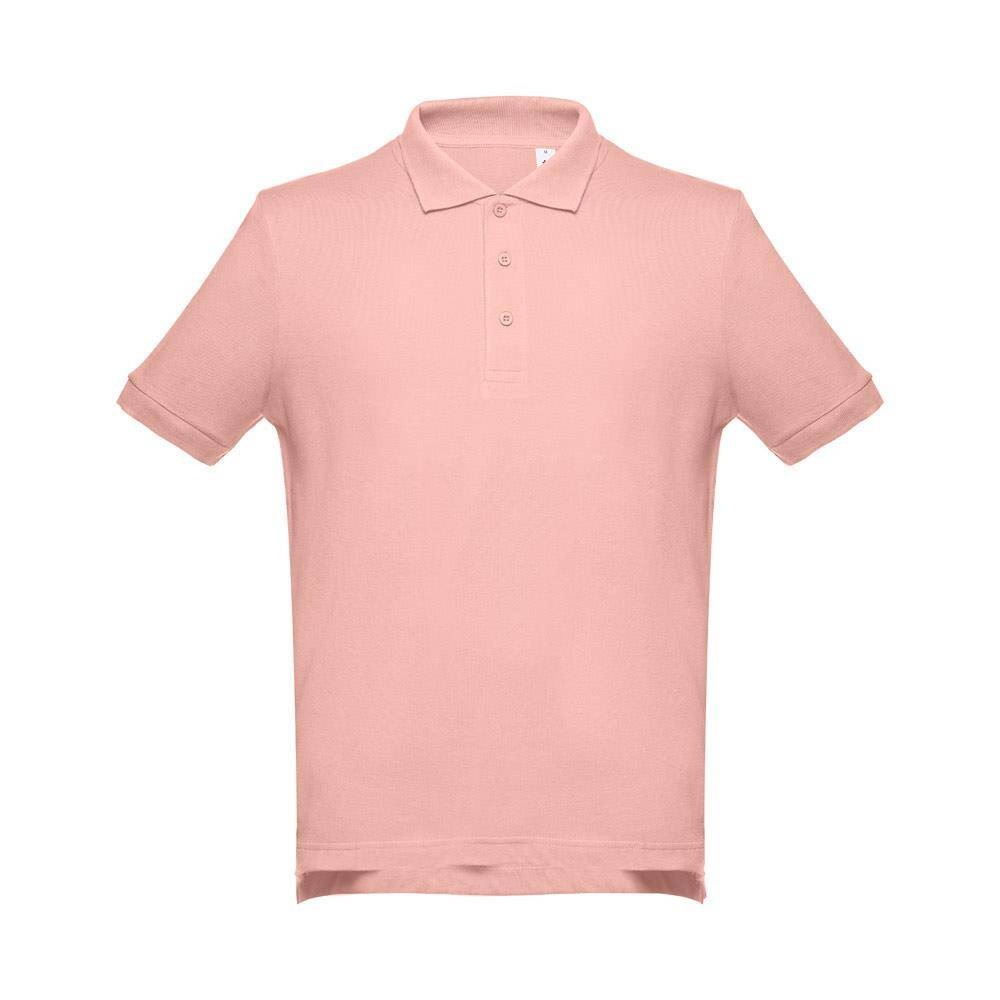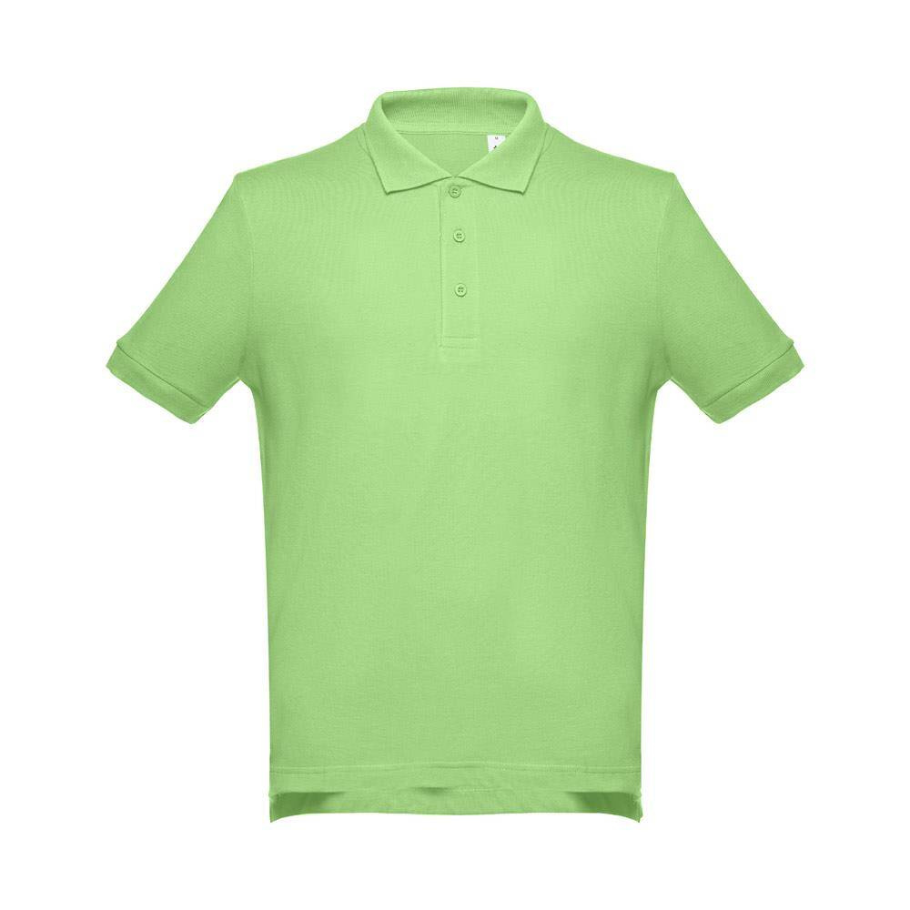 Męska koszulka polo z krótkim rękawem, ze 100% bawełny o splocie piqué (195 g/m²) (Kolor 183: 85% bawełna/15% wiskoza). Kołnierzyk i mankiety z prążkowanym wykończeniem. Kołnierzyk jest wzmocniony taśmą piqué. Z przodu przy kołnierzyku znajdują się 3 pasujące kolorystycznie guziki (dodatkowy guzik na wewnętrznym szwie). Zszywana po bokach, z małymi rozcięciami w szwach bocznych u dołu. Rozmiary: S, M, L, XL, XXL