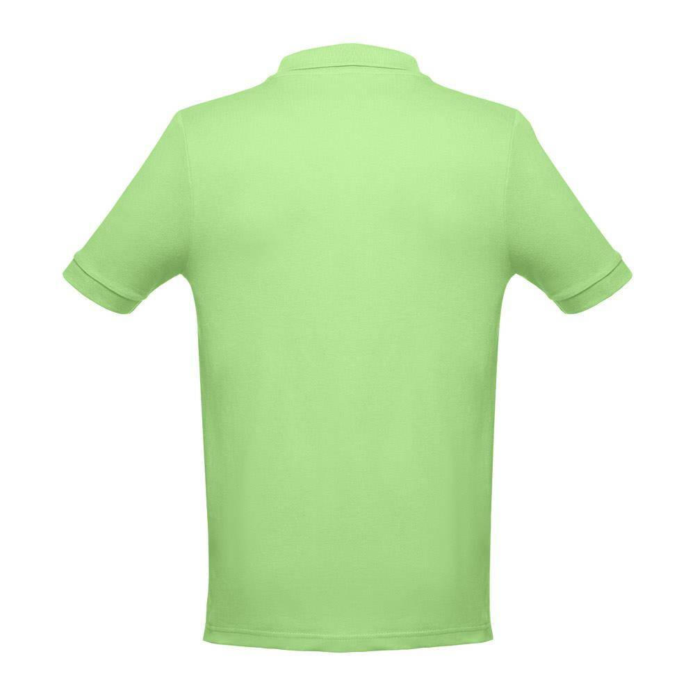 Męska koszulka polo z krótkim rękawem, ze 100% bawełny o splocie piqué (195 g/m²) (Kolor 183: 85% bawełna/15% wiskoza). Kołnierzyk i mankiety z prążkowanym wykończeniem. Kołnierzyk jest wzmocniony taśmą piqué. Z przodu przy kołnierzyku znajdują się 3 pasujące kolorystycznie guziki (dodatkowy guzik na wewnętrznym szwie). Zszywana po bokach, z małymi rozcięciami w szwach bocznych u dołu. Rozmiary: S, M, L, XL, XXL