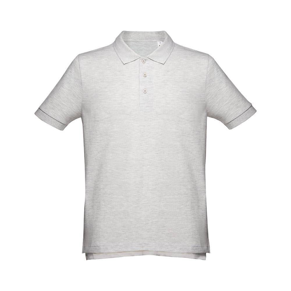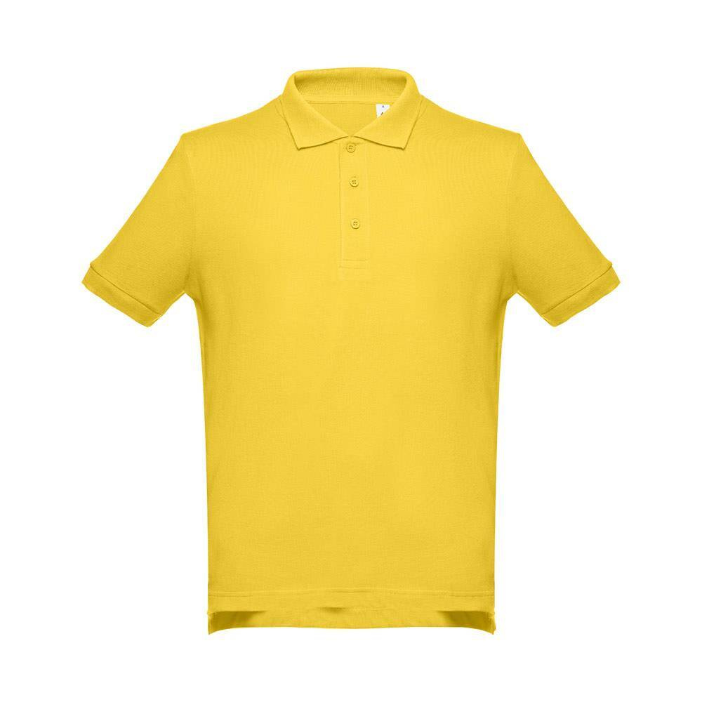 Męska koszulka polo z krótkim rękawem, ze 100% bawełny o splocie piqué (195 g/m²) (Kolor 183: 85% bawełna/15% wiskoza). Kołnierzyk i mankiety z prążkowanym wykończeniem. Kołnierzyk jest wzmocniony taśmą piqué. Z przodu przy kołnierzyku znajdują się 3 pasujące kolorystycznie guziki (dodatkowy guzik na wewnętrznym szwie). Zszywana po bokach, z małymi rozcięciami w szwach bocznych u dołu. Rozmiary: S, M, L, XL, XXL