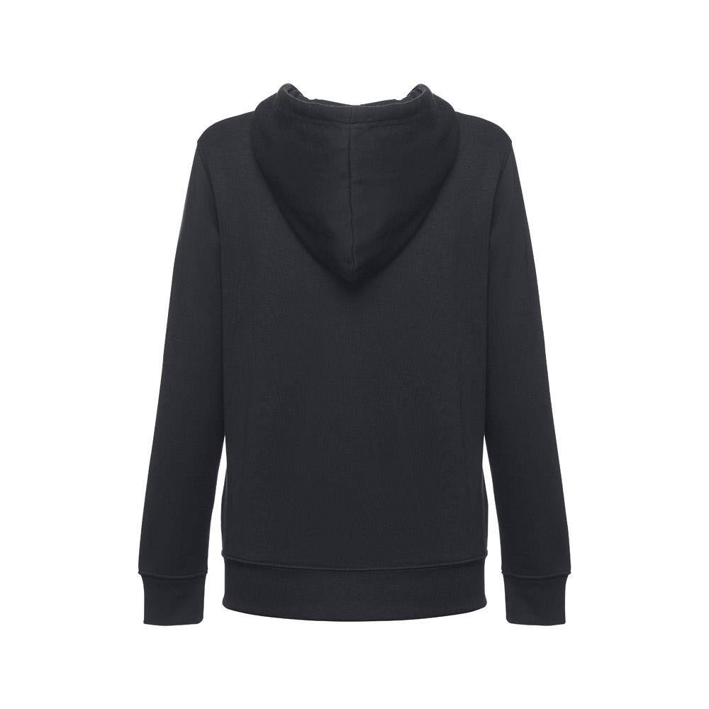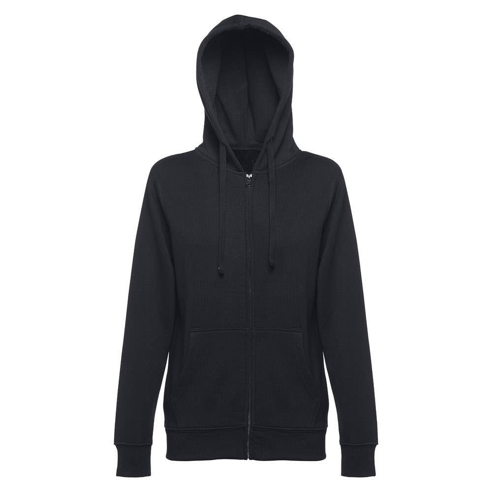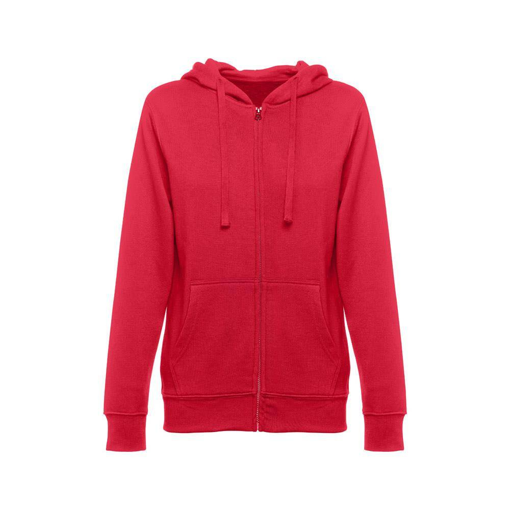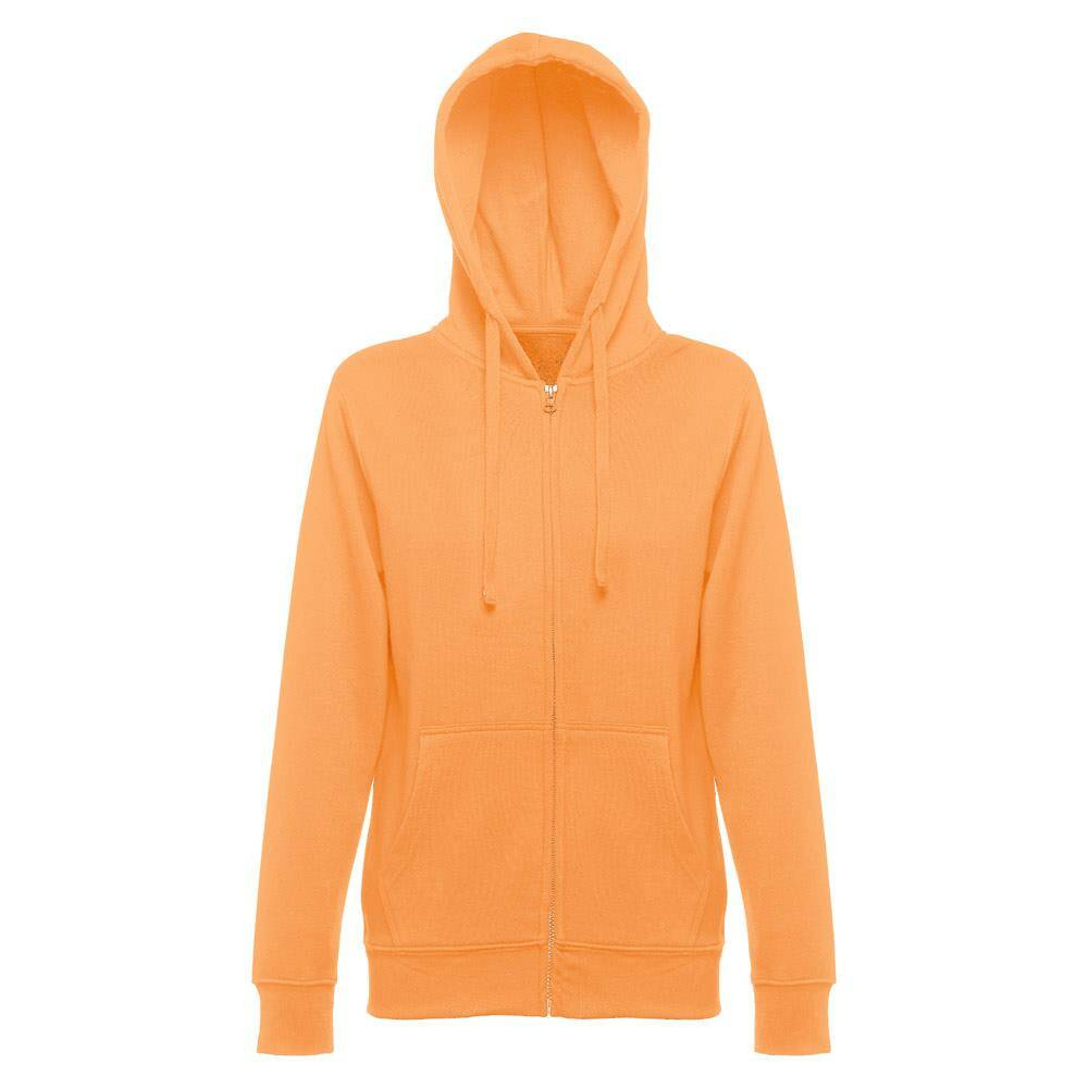 Damska bluza z kapturem zapinana na suwak. 50% bawełna i 50% poliester (320 g/m²) ze zgrzebnym wnętrzem. Kaptur jest podszyty i posiada kolorowy sznurek do ściągania. Bluza ma 2 kieszenie kangurkowe i kryty plastikowy zamek błyskawiczny. Fason ze ściągaczami przy mankietach i na dole. Rozmiary: S, M, L, XL, XXL