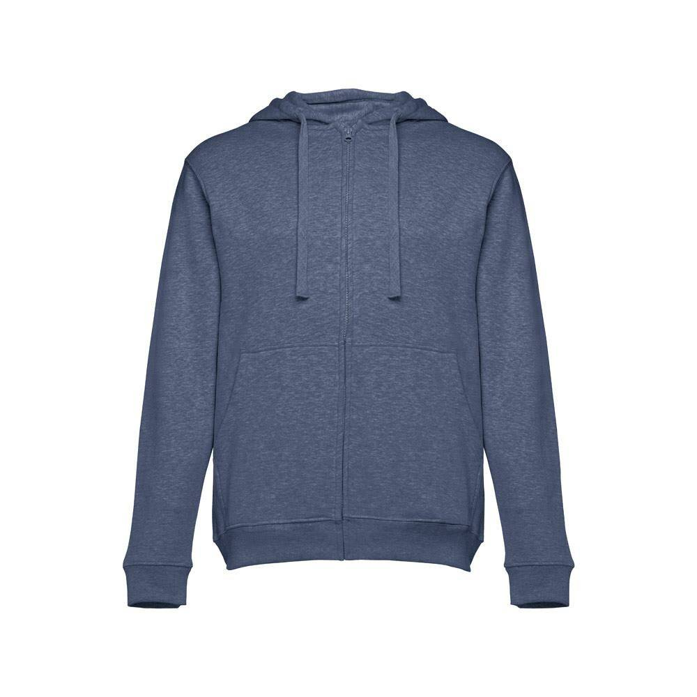 Męska bluza z kapturem zapinana na suwak. 50% bawełna i 50% poliester (320 g/m²) ze zgrzebnym wnętrzem. Kaptur jest podszyty i posiada kolorowy sznurek do ściągania. Bluza ma 2 kieszenie kangurkowe i kryty plastikowy zamek błyskawiczny. Fason ze ściągaczami przy mankietach i na dole. Rozmiary: S, M, L, XL, XXL