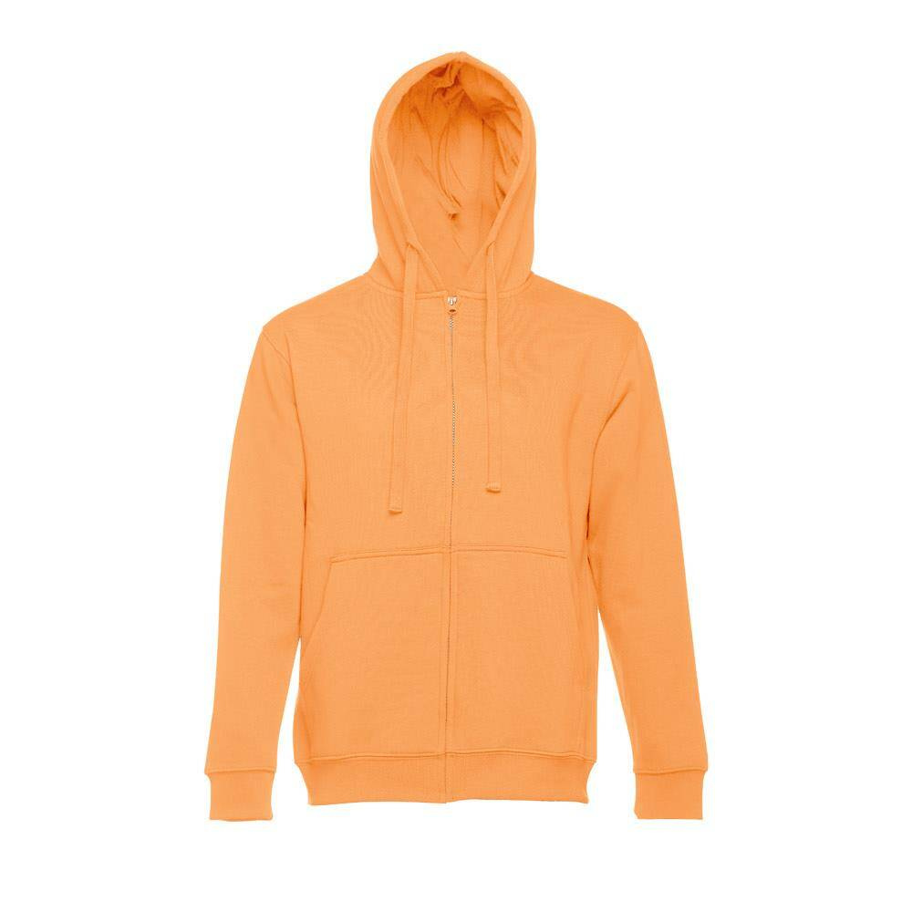 Męska bluza z kapturem zapinana na suwak. 50% bawełna i 50% poliester (320 g/m²) ze zgrzebnym wnętrzem. Kaptur jest podszyty i posiada kolorowy sznurek do ściągania. Bluza ma 2 kieszenie kangurkowe i kryty plastikowy zamek błyskawiczny. Fason ze ściągaczami przy mankietach i na dole. Rozmiary: S, M, L, XL, XXL