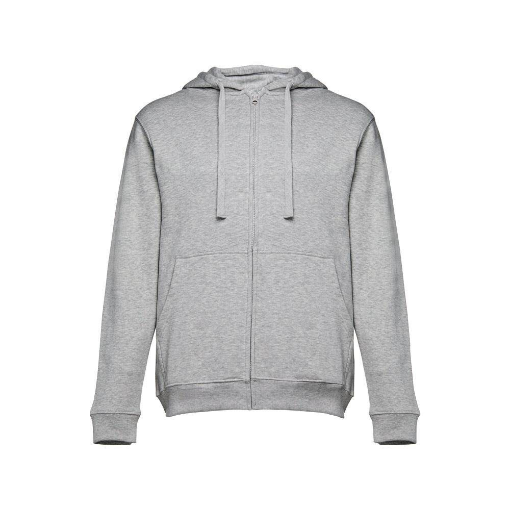 Męska bluza z kapturem zapinana na suwak. 50% bawełna i 50% poliester (320 g/m²) ze zgrzebnym wnętrzem. Kaptur jest podszyty i posiada kolorowy sznurek do ściągania. Bluza ma 2 kieszenie kangurkowe i kryty plastikowy zamek błyskawiczny. Fason ze ściągaczami przy mankietach i na dole. Rozmiary: S, M, L, XL, XXL