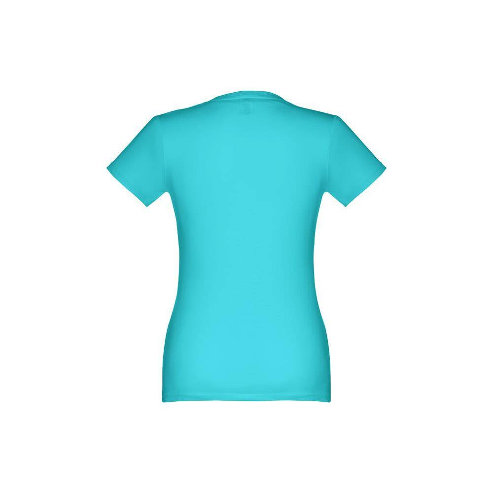 Damski t-shirt o dopasowanym kroju. 100% bawełna dżersej (190 g/m²) ze zgrzebną przędzą bawełnianą (kolor 183: 90% bawełna/10% wiskoza). Posiada cienki kołnierzyk z dżerseju wzmocniony satynową tasiemką. Zszywany po bokach, z podwójnym ściegiem na rękawach i na dole. Rozmiary: S, M, L, XL, XXL