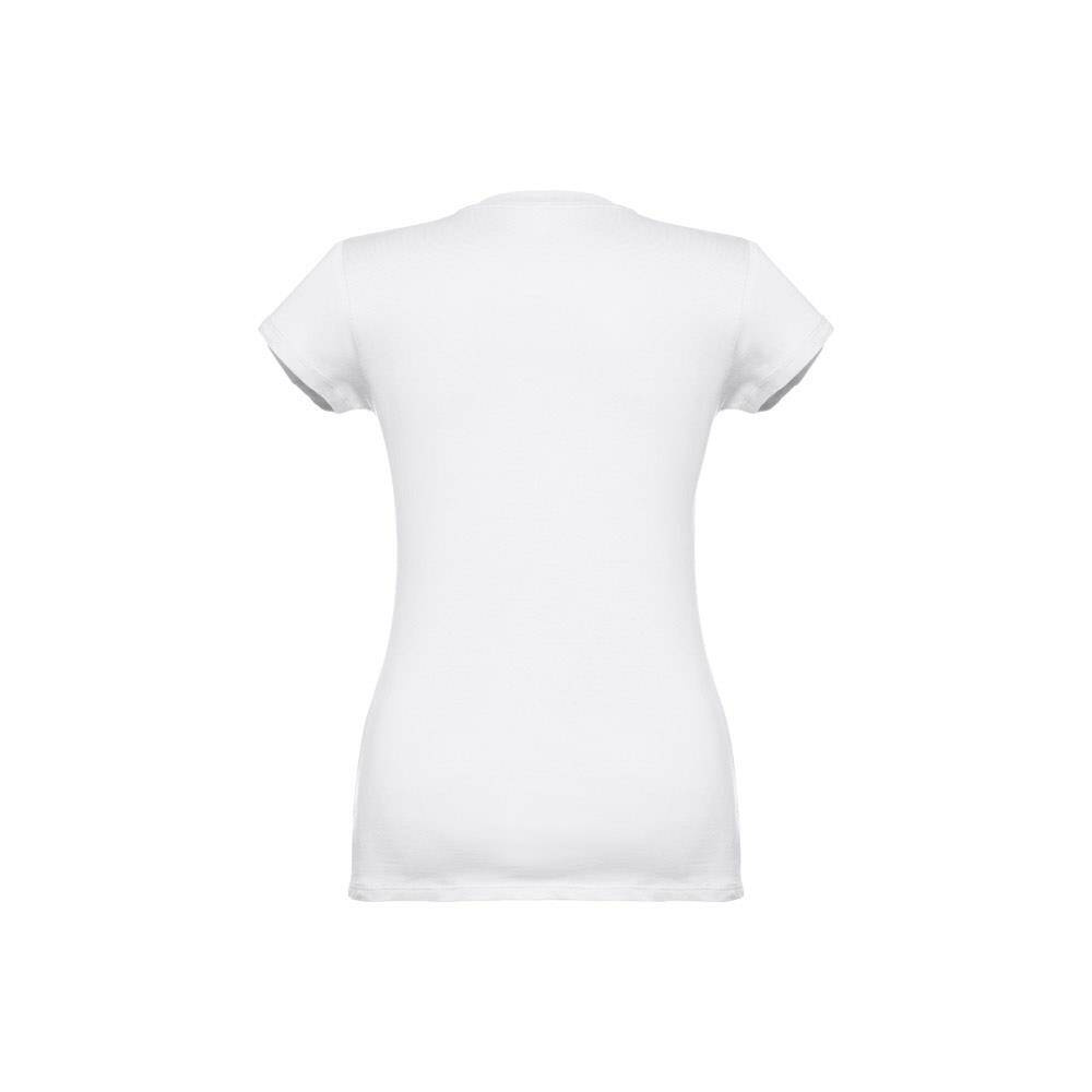 Damski t-shirt o dopasowanym kroju. 100% bawełna dżersej (150 g/m²) ze zgrzebną przędzą bawełnianą. Posiada kołnierzyk z dżerseju z dekoltem w kształcie litery „V”, wzmocniony od wewnątrz dżersejową tasiemką. Podwójne szwy na rękawach i dolnej części. Rozmiary: S, M, L, XL, XXL