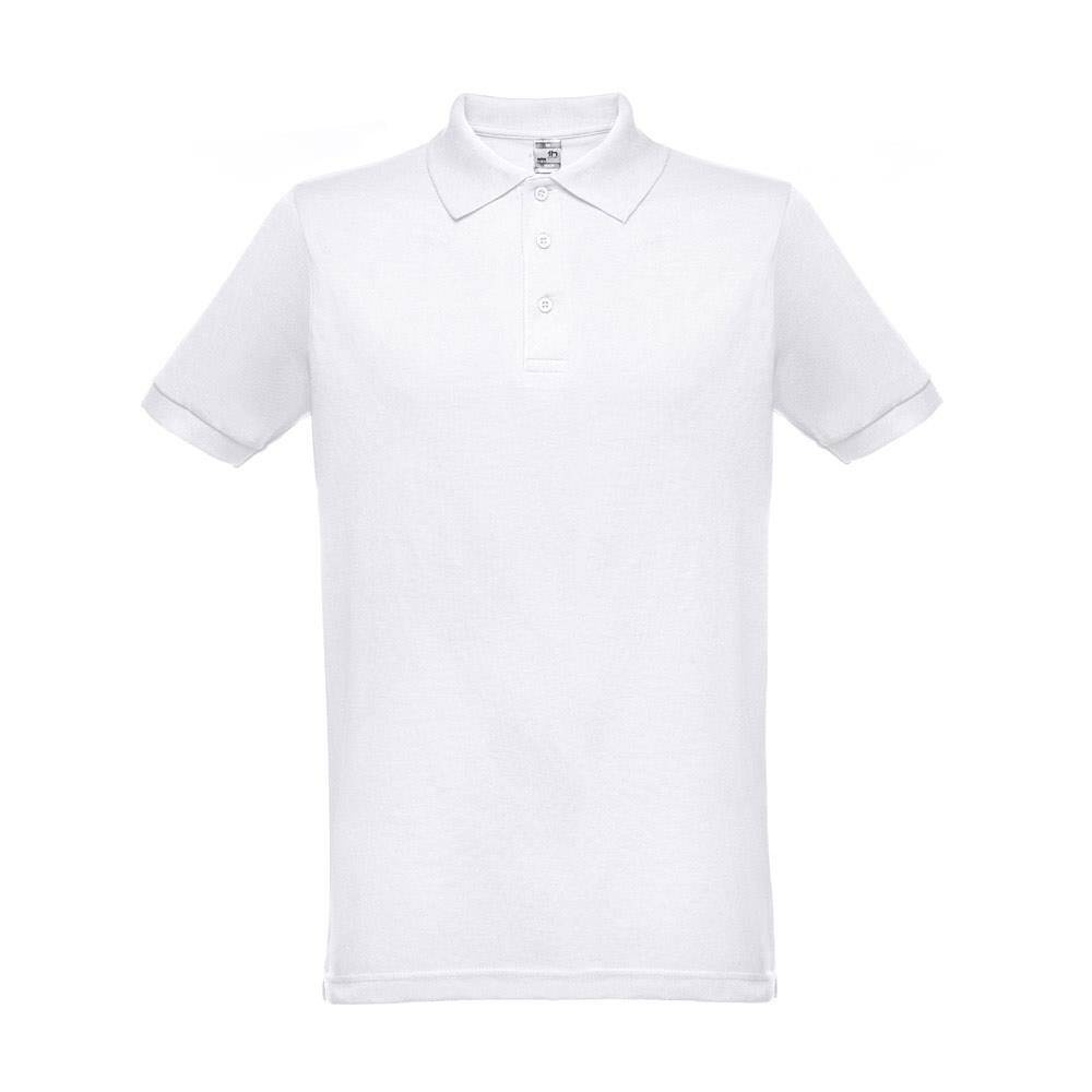 Męska koszulka polo z krótkim rękawem, z siateczki piqué 35% zgrzebnej bawełny i 65% poliestru (200 g/m²). Polo o regularnym kroju z prążkowanym kołnierzykiem i rękawami, kołnierzyk jest wzmocniony taśmą piqué. Z przodu znajdują się 3 pasujące kolorystycznie guziki (dodatkowy guzik na wewnętrznym szwie). Zszywana po bokach. Rozmiary: XS, S, M, L, XL, XXL
