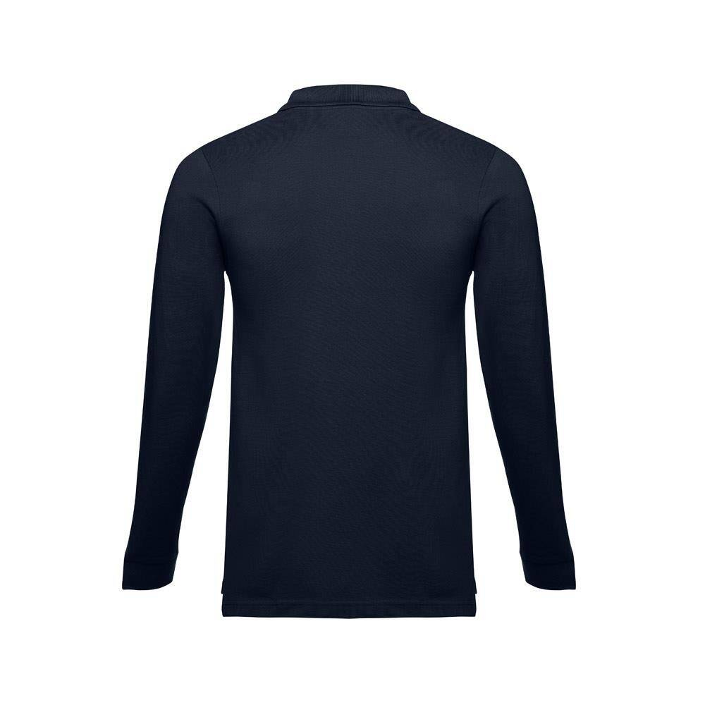 Męski t-shirt polo z długim rękawem ze 100% bawełny o splocie piqué (210 g/m²) ze zgrzebną przędzą bawełnianą (kolor 183: 85% bawełna/15% wiskoza). Polo o regularnym fasonie, z prążkowanym kołnierzykiem i rękawami. Kołnierzyk jest wzmocniony taśmą piqué. Posiada 3 dopasowane kolorystycznie guziki (dodatkowy guzik umieszczony w szwie wewnętrznym). Zszywany po bokach, z małymi rozcięciami w szwach bocznych. Rozmiar: 3XL