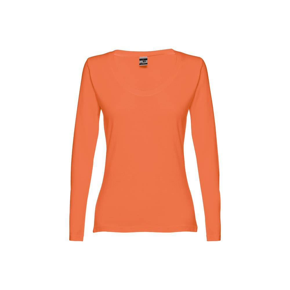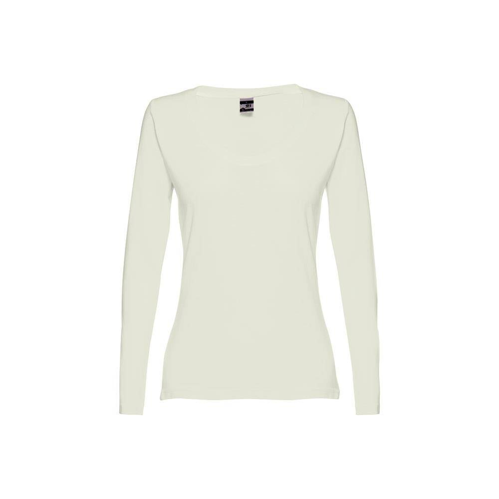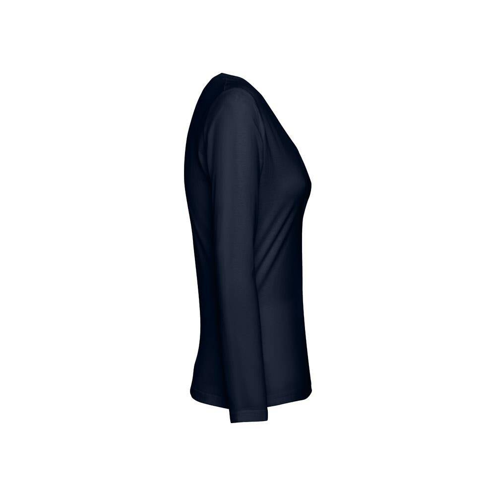 Damska koszulka jerseyowa z długim rękawem, dopasowana, 100% bawełny (150 g/m²) z przędzą z bawełny zgrzebnej (kolory: 194, 195: 60% bawełny/40% poliestru, kolor 183: 90% bawełna/10% wiskoza). Nowoczesny fason z kołnierzem z jerseyowym paskiem wzmacniającym. Podwójny szew na rękawach i na dole. Zszywana po bokach. Rozmiary: S, M, L, XL, XXL