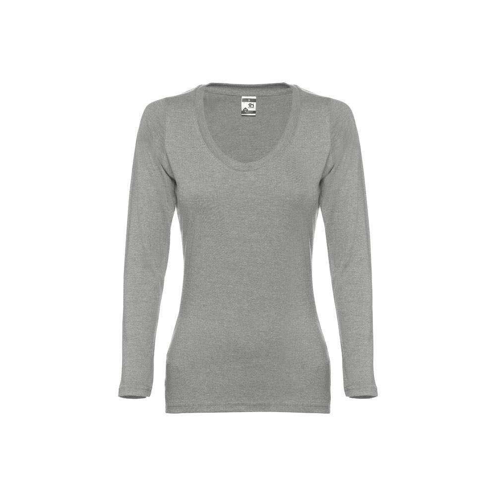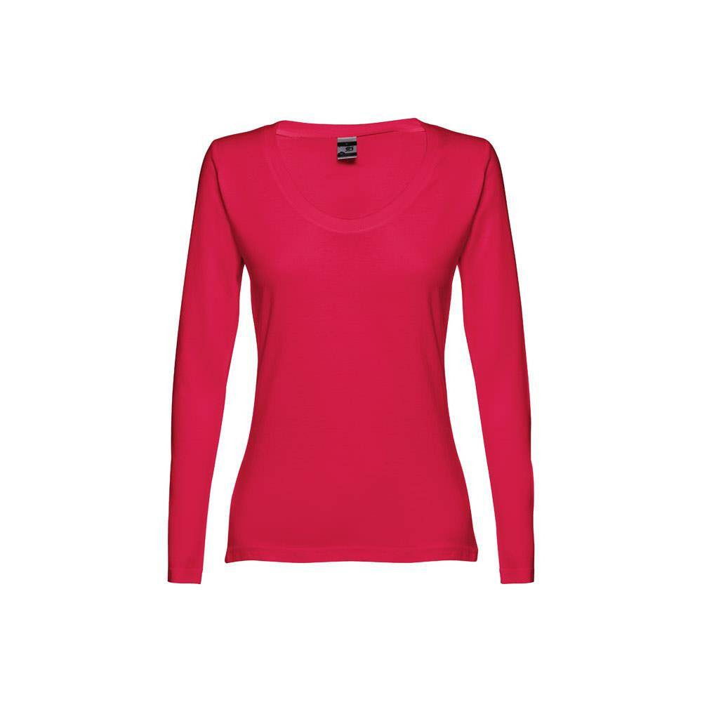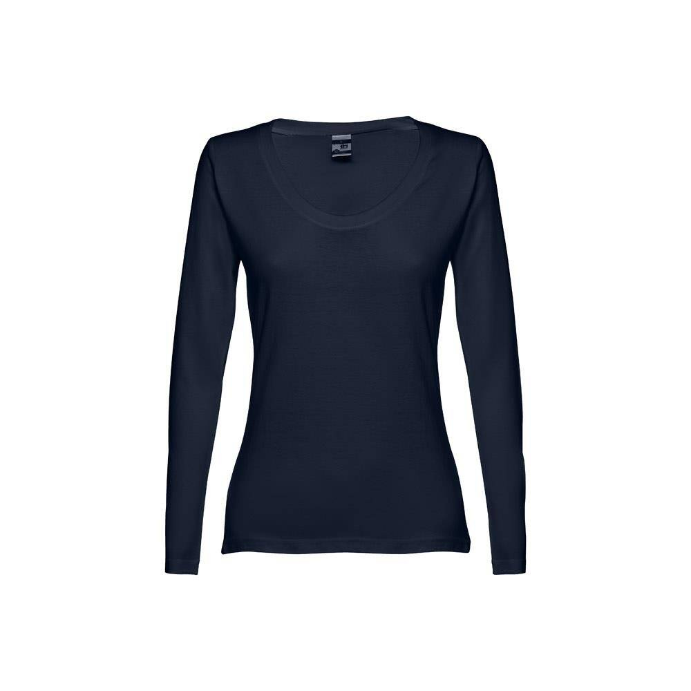 Damska koszulka jerseyowa z długim rękawem, dopasowana, 100% bawełny (150 g/m²) z przędzą z bawełny zgrzebnej (kolory: 194, 195: 60% bawełny/40% poliestru, kolor 183: 90% bawełna/10% wiskoza). Nowoczesny fason z kołnierzem z jerseyowym paskiem wzmacniającym. Podwójny szew na rękawach i na dole. Zszywana po bokach. Rozmiary: S, M, L, XL, XXL
