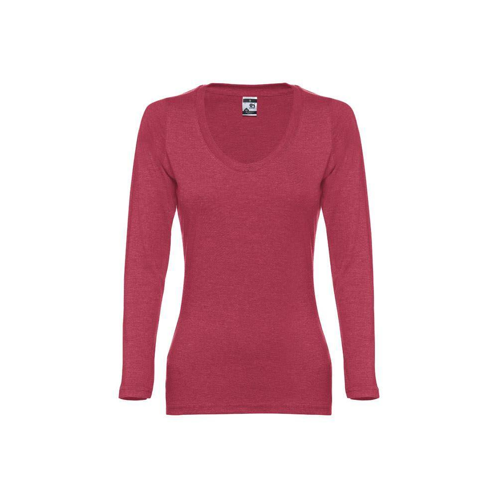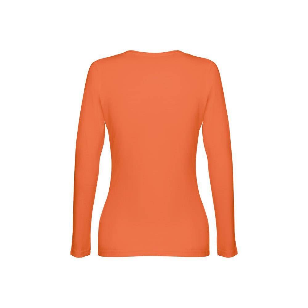 Damska koszulka jerseyowa z długim rękawem, dopasowana, 100% bawełny (150 g/m²) z przędzą z bawełny zgrzebnej (kolory: 194, 195: 60% bawełny/40% poliestru, kolor 183: 90% bawełna/10% wiskoza). Nowoczesny fason z kołnierzem z jerseyowym paskiem wzmacniającym. Podwójny szew na rękawach i na dole. Zszywana po bokach. Rozmiary: S, M, L, XL, XXL
