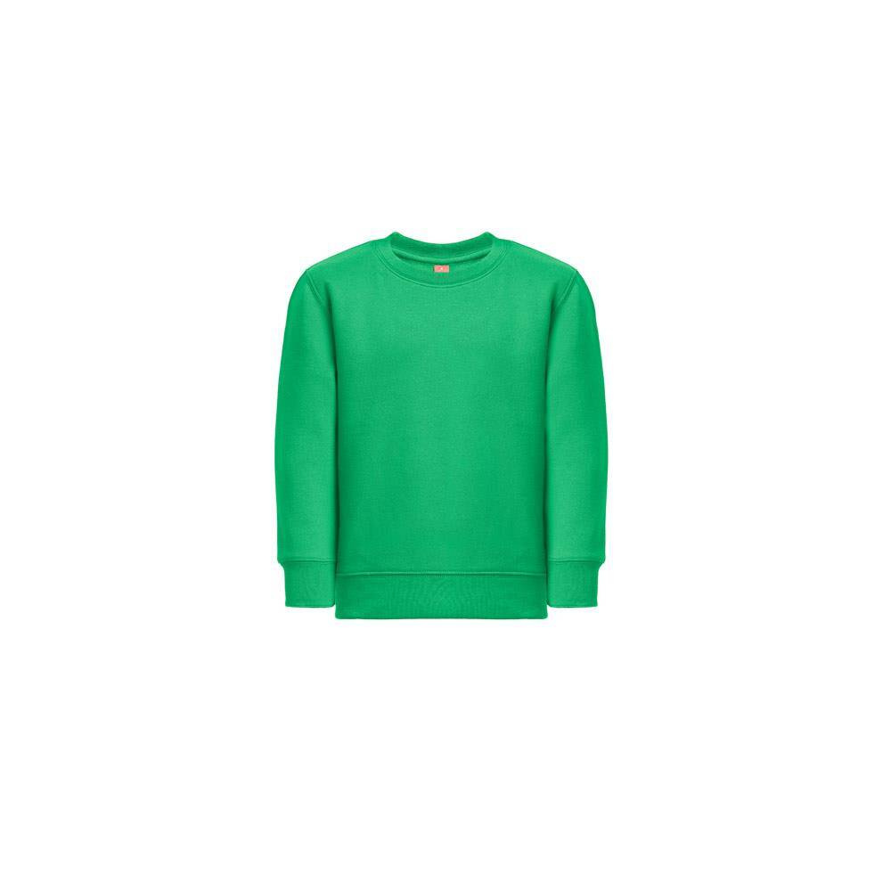 Bluza dziecięca (300 g/m²) z bawełny (50%) i poliestru z recyklingu (50%). Kartonowe wnętrze i ściągacz 1x1 na kołnierzu, mankietach i u dołu. Rozmiary: 4, 6, 8, 10, 12