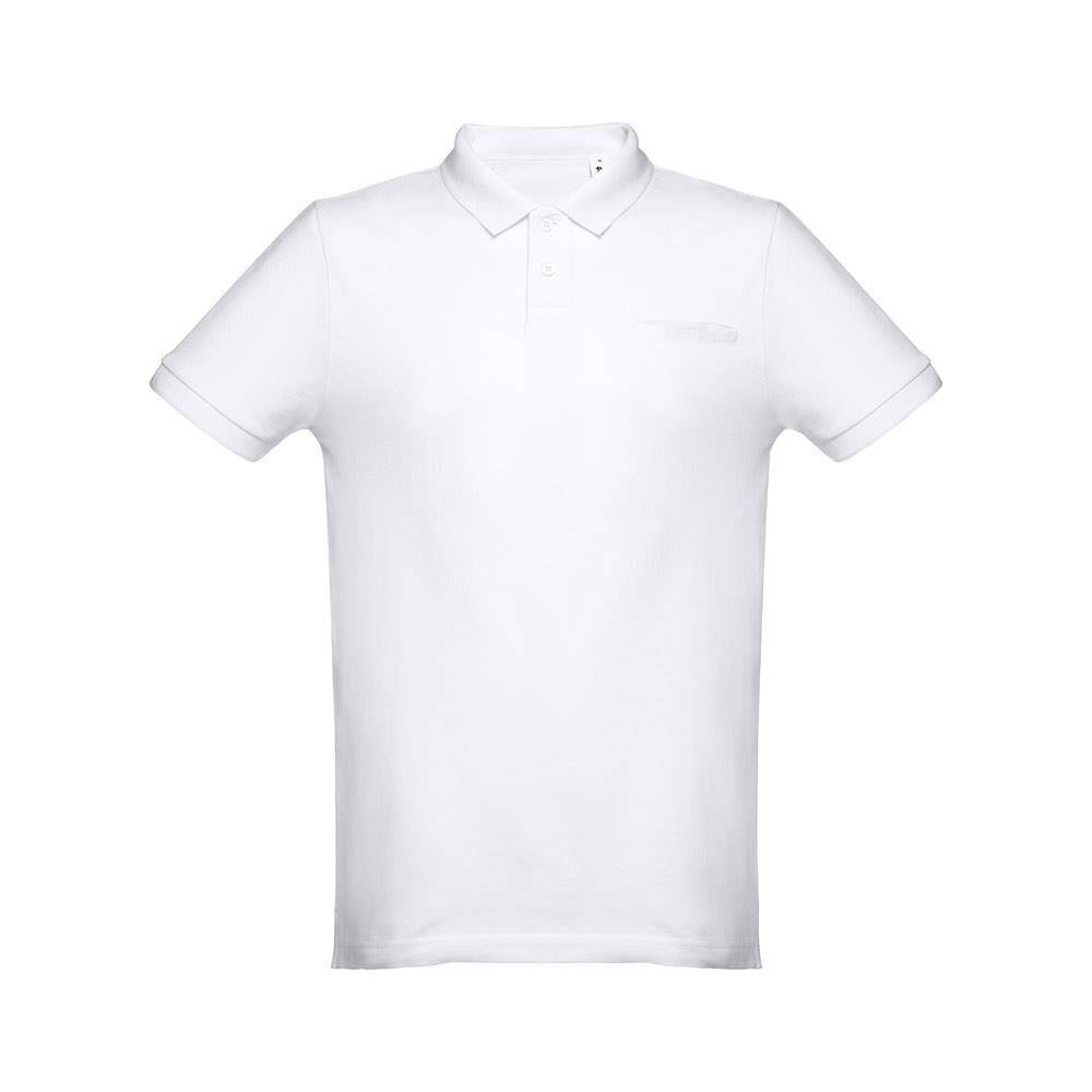 Męska koszulka polo z krótkim rękawem. 100% bawełna zgrzebna (195 g/m²). Z eleganckim kołnierzem i prążkowanymi rękawami ze wzmocnionym wykończeniem typu piqué. Wzmocniona plisa z 2 dopasowanymi kolorystycznie guzikami (dodatkowy guzik umieszczony w szwie wewnętrznym). Nowoczesny fason z pojedynczą ściąganą kieszenią na piersi. Zszywana po bokach, z małymi rozcięciami w szwach bocznych u dołu koszulki. Rozmiary: S, M, L, XL, XXL