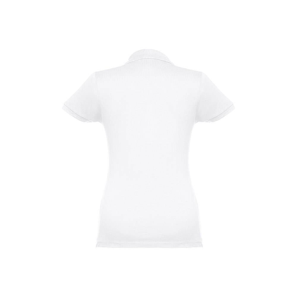 Damska koszulka polo z krótkim rękawem. 100% bawełna zgrzebna typu piqué (195 g/m²). Kołnierzyk i mankiety ze ściągaczem. Kołnierz wzmocniony tasiemką typu piqué. Z przodu obok kołnierzyka cztery dopasowane kolorystycznie guziki (dodatkowy guzik znajduje się w szwie wewnętrznym). Zszywana po bokach. Rozmiary: S, M, L, XL, XXL