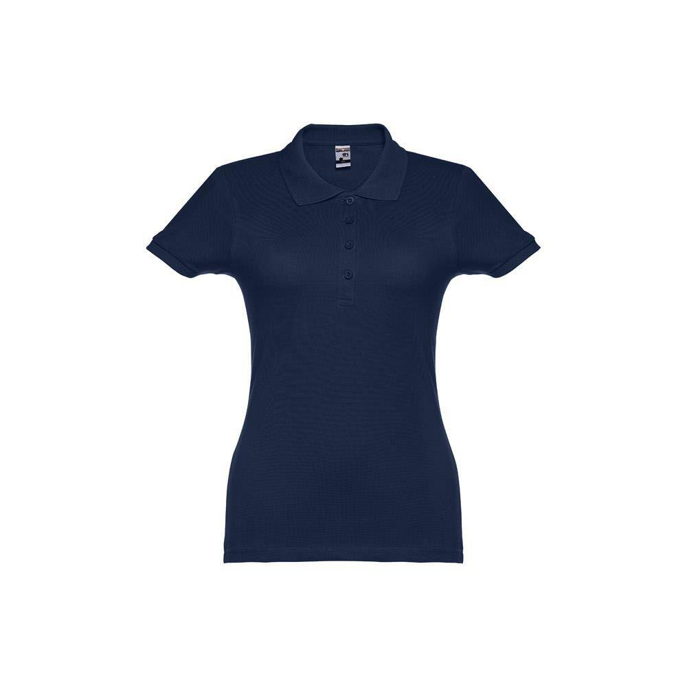 Damska koszulka polo z krótkim rękawem. 100% zgrzebna bawełna typu piqué (195 g/m²) (kolor 183: 85% bawełna/15% wiskoza). Kołnierzyk i mankiety ze ściągaczem, kołnierz wzmocniony tasiemką typu piqué. Z przodu obok kołnierzyka cztery dopasowane kolorystycznie guziki (dodatkowy guzik wszyty w szew wewnętrzny). Zszywana po bokach. Rozmiary: S, M, L, XL, XXL