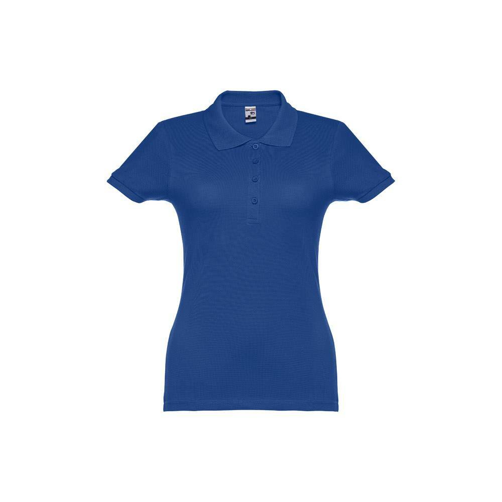 Damska koszulka polo z krótkim rękawem. 100% zgrzebna bawełna typu piqué (195 g/m²) (kolor 183: 85% bawełna/15% wiskoza). Kołnierzyk i mankiety ze ściągaczem, kołnierz wzmocniony tasiemką typu piqué. Z przodu obok kołnierzyka cztery dopasowane kolorystycznie guziki (dodatkowy guzik wszyty w szew wewnętrzny). Zszywana po bokach. Rozmiary: S, M, L, XL, XXL
