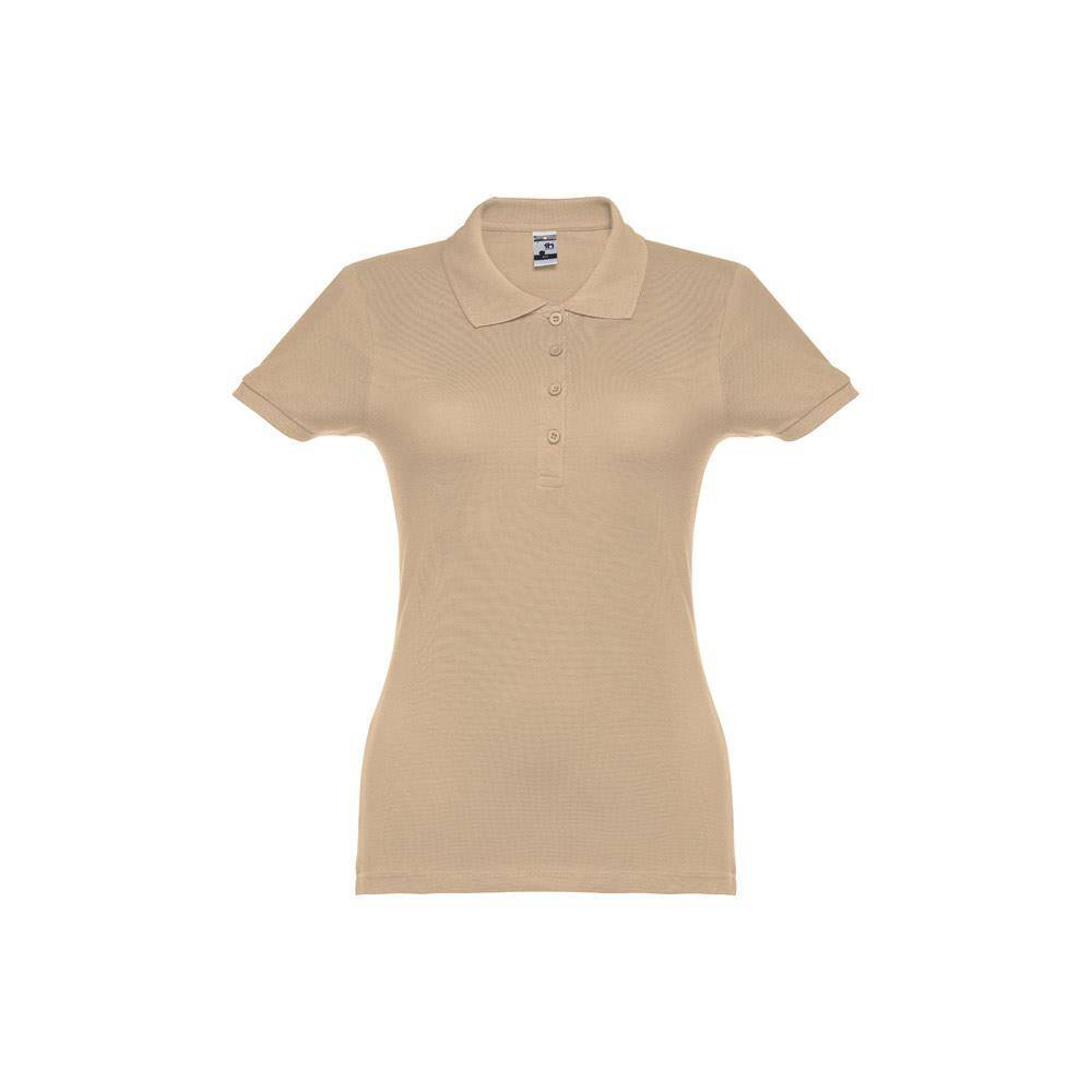 Damska koszulka polo z krótkim rękawem. 100% zgrzebna bawełna typu piqué (195 g/m²) (kolor 183: 85% bawełna/15% wiskoza). Kołnierzyk i mankiety ze ściągaczem, kołnierz wzmocniony tasiemką typu piqué. Z przodu obok kołnierzyka cztery dopasowane kolorystycznie guziki (dodatkowy guzik wszyty w szew wewnętrzny). Zszywana po bokach. Rozmiary: S, M, L, XL, XXL