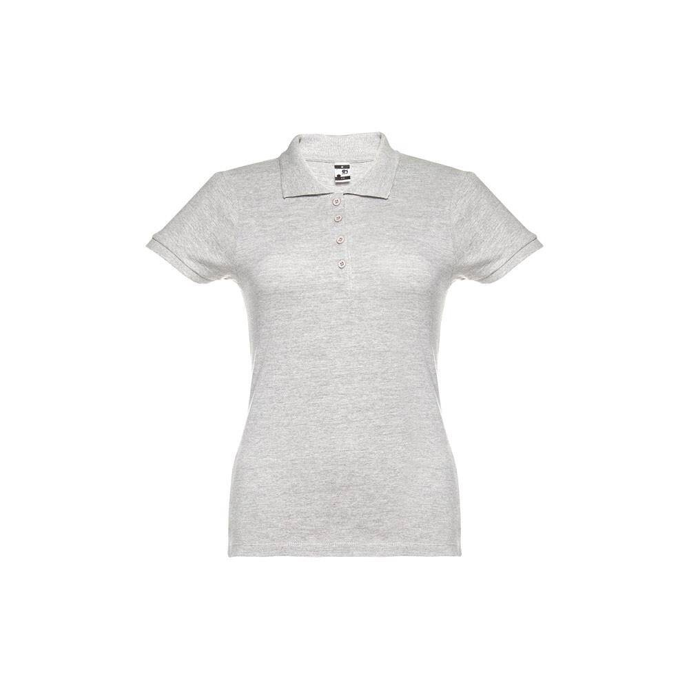 Damska koszulka polo z krótkim rękawem. 100% zgrzebna bawełna typu piqué (195 g/m²) (kolor 183: 85% bawełna/15% wiskoza). Kołnierzyk i mankiety ze ściągaczem, kołnierz wzmocniony tasiemką typu piqué. Z przodu obok kołnierzyka cztery dopasowane kolorystycznie guziki (dodatkowy guzik wszyty w szew wewnętrzny). Zszywana po bokach. Rozmiary: S, M, L, XL, XXL