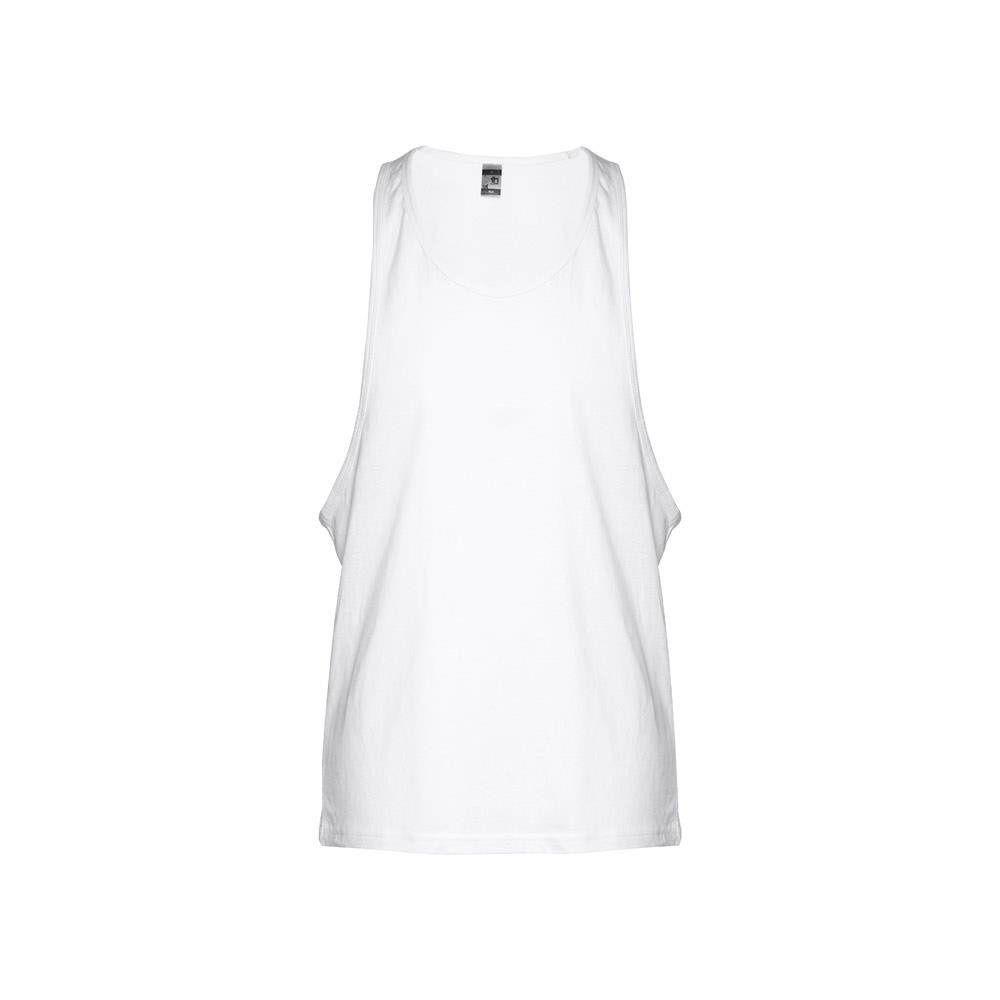 Męska koszulka na ramiączkach. 100% bawełna zgrzebna typu jersey (140 g/m²). Głębokie wycięcia pod pachami, okrągły kołnierz, z lamówką pod pachami i przy dekolcie. Zszywana po bokach, z podwójnym szwem na dole. Rozmiary: XS, S, M, L, XL, XXL