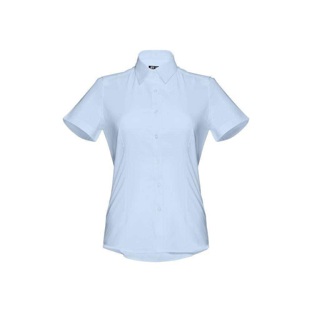 Damska koszula oxford z krótkim rękawem, wykonana z 70% bawełny i 30% poliestru (130 g/m²). Dopasowana koszula z 2 zaszewkami z tyłu i z przodu oraz podwójnym szwem na dole rękawów. Posiada 7 guzików w kolorze perłowym. Rozmiary: S, M, L, XL, XXL