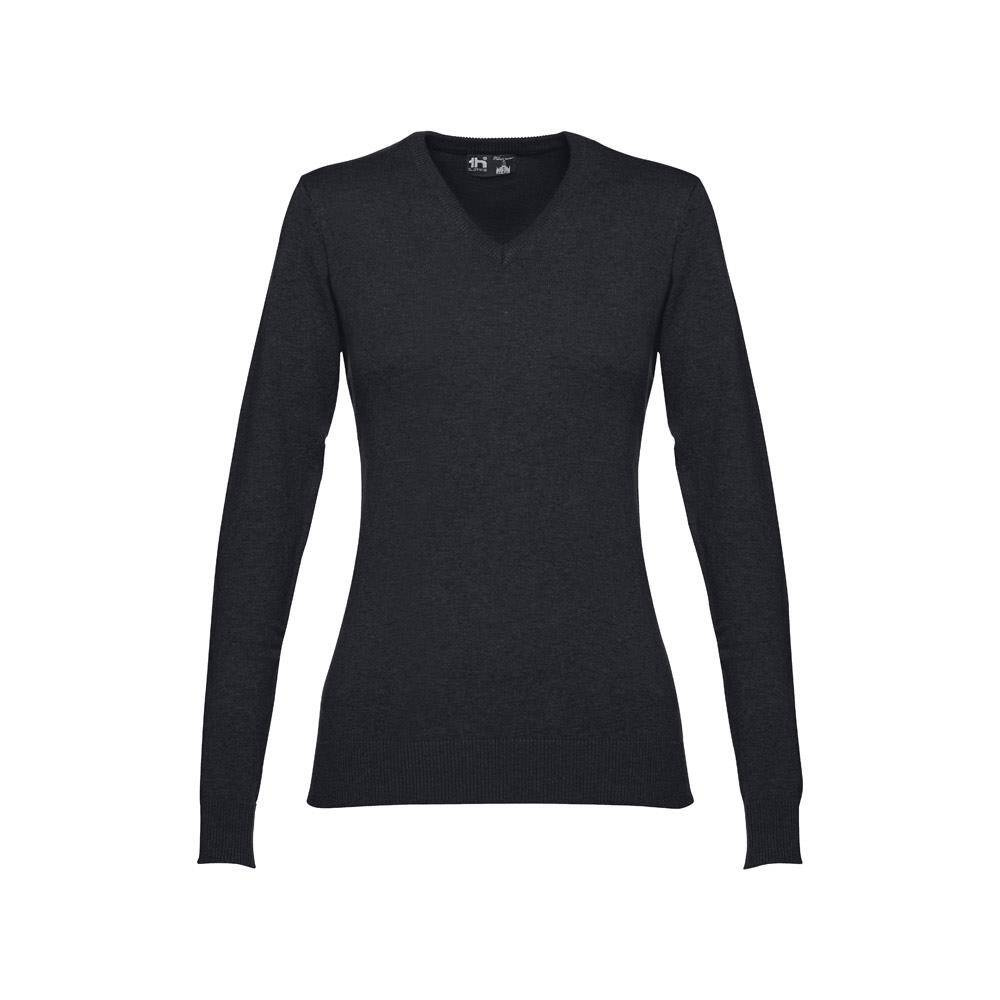 Damski sweter z dekoltem "V". 70% bawełny i 30% poliamidu (220 g/m²). Posiada kołnierz, mankiety i dolną część ze ściągaczami. Bardzo modnie wstawione rękawy. Rozmiary: S, M, L, XL, XXL