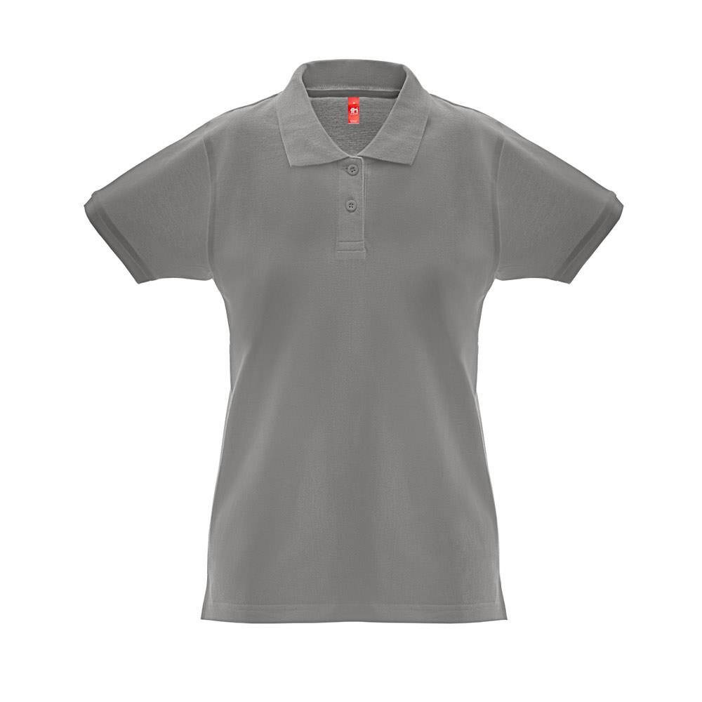 Damska koszulka polo ze 100% zgrzebnej bawełny (240 g/m²) z krótkim rękawem. Krój regular z kołnierzem i wstążkami na rękawach oraz wzmocnieniem kołnierza z piki. Wzmocniony kołnierzyk zapinany na 2 guziki w tym samym kolorze (dodatkowy guzik w szwie wewnętrznym). Zszybana po bokach, z małymi bocznymi otworami na dole. Widoczna etykieta jest możliwa do usunięcia. Rozmiary: S, M, L, XL, XXL