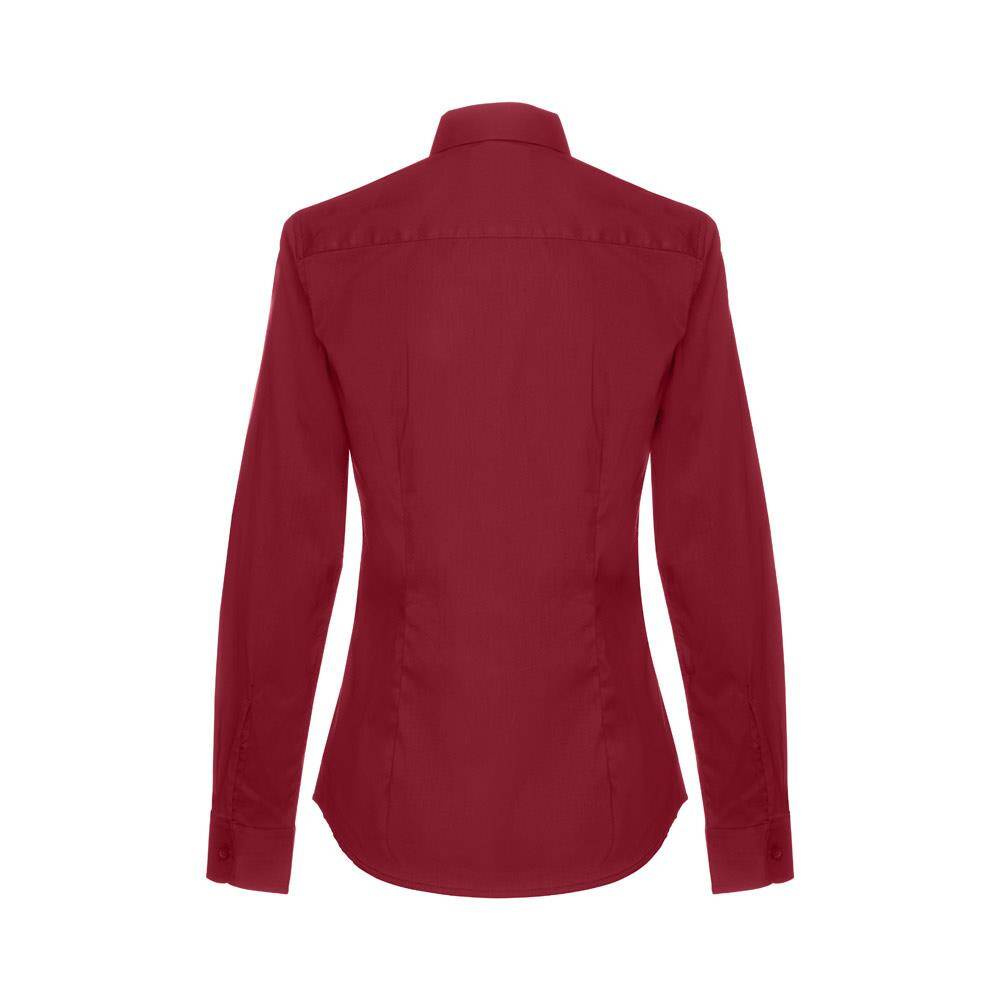 Damska koszula z długim rękawem. 68% bawełna, 28% poliamid i 4% elastan (115 g/m²). Długi rękaw z 1 zakładką i regulowanymi mankietami z 1 guzikiem. Dopasowana talia z 2 zaszewkami z tyłu i zapięciem na 7 pasujących kolorystycznie guzików. Rozmiary: S, M, L, XL, XXL