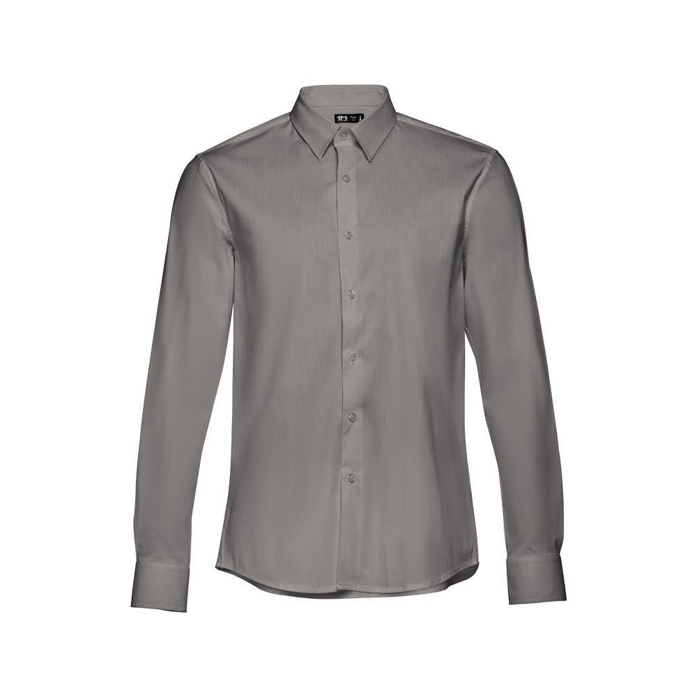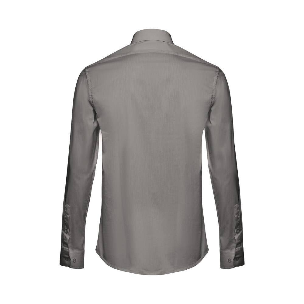 Męska koszula z długim rękawem. 68% bawełna, 28% poliamid i 4% elastan (115 g/m²). Długi rękaw z 1 zakładką i regulowanymi mankietami z 2 guzikami. Zapinana na 7 guzików w dopasowanym kolorze. Rozmiary: S, M, L, XL, XXL