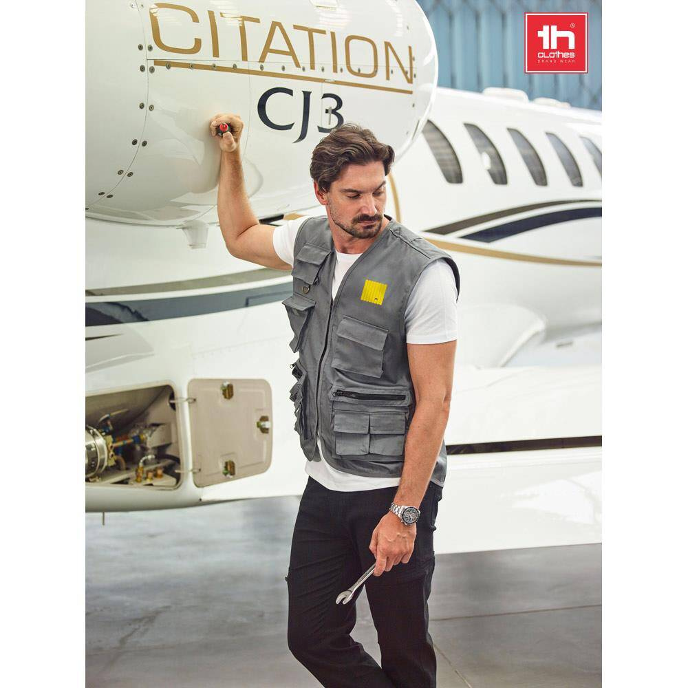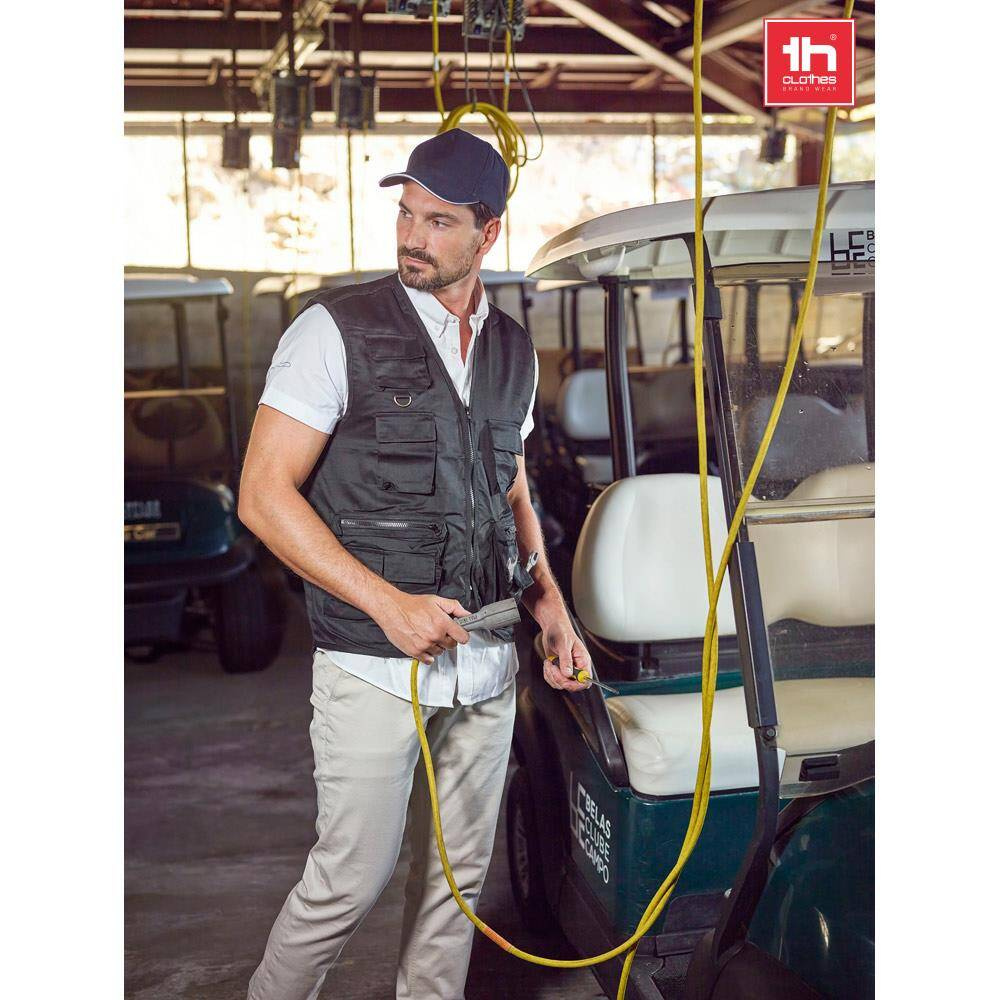 Poliester (65%) i bawełna (35%) kamizelka z wieloma kieszeniami (200 g/m²) z impregnacją hydrofobową. Odpowiednia dla reporterów i innych zawodów terenowych. Rozmiary: S, M, L, XL, XXL