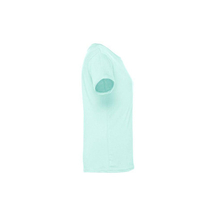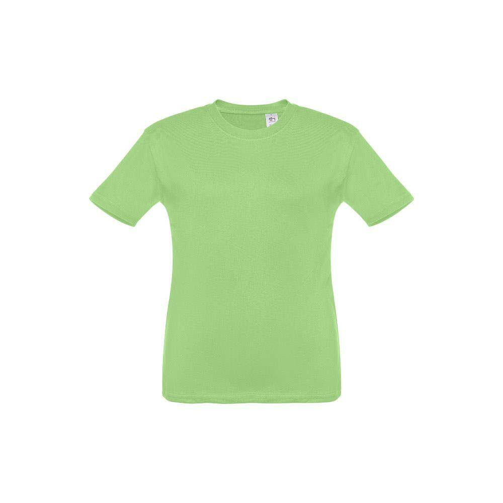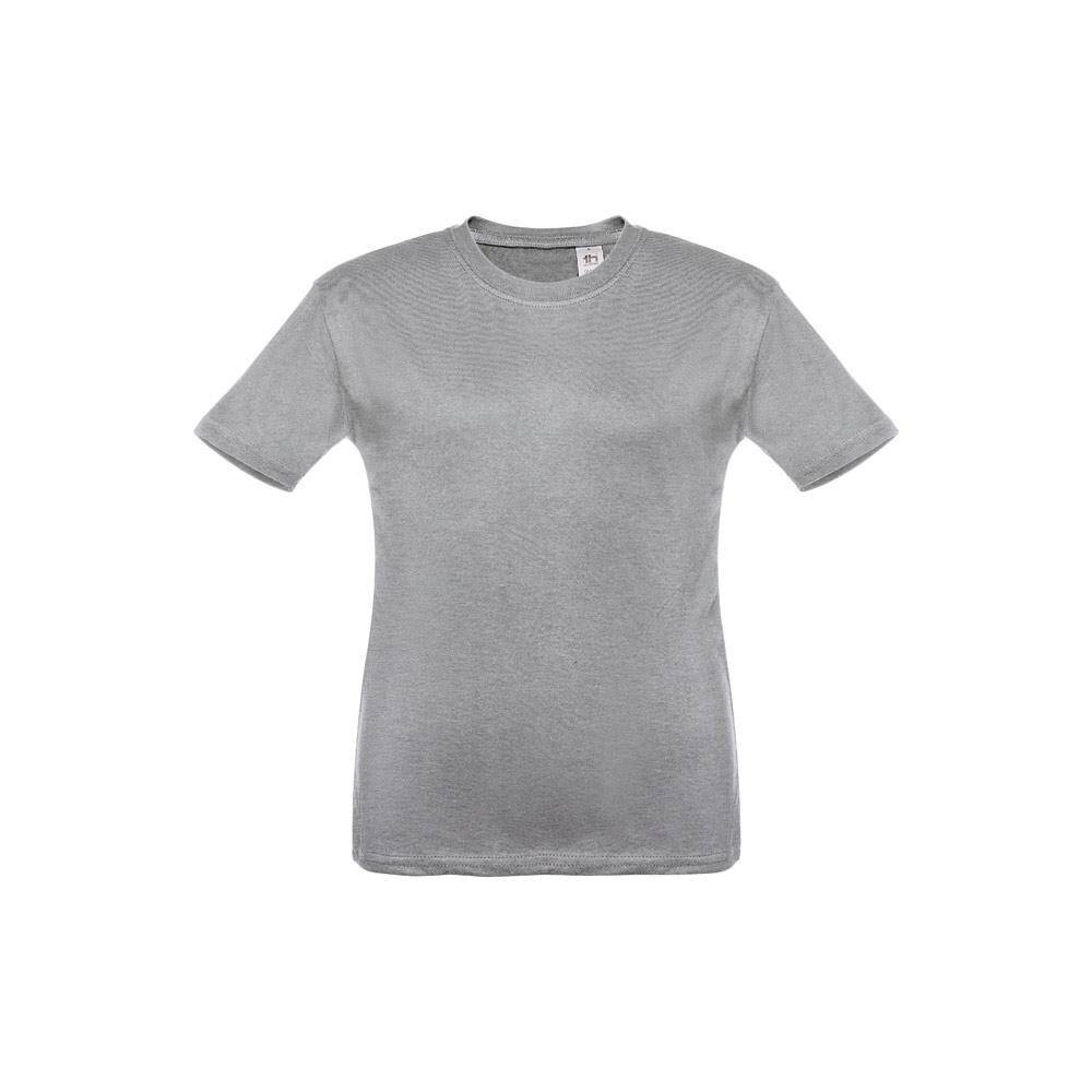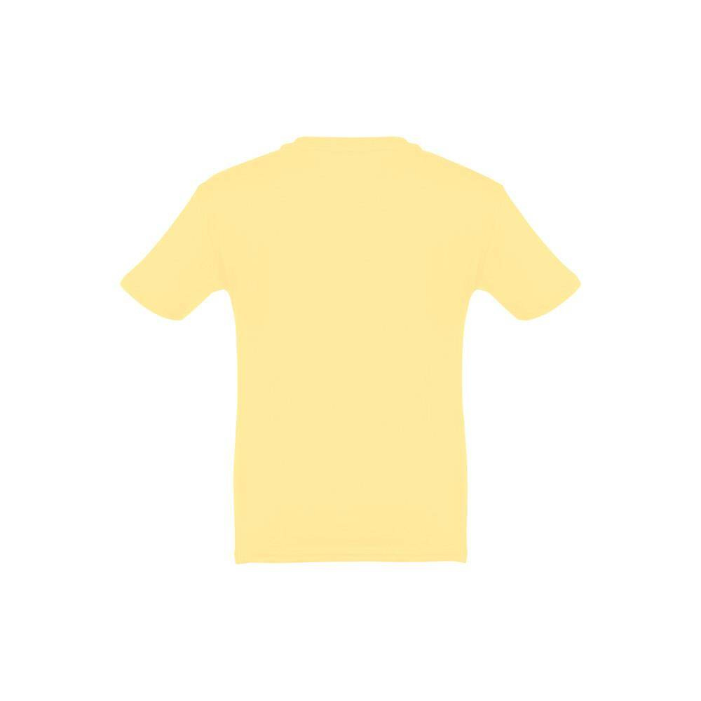 T-shirt dziecięcy (unisex) ze 100% bawełnianego dżerseju zgrzebnego (150 g/m²). Posiada 1x1 prążkowany kołnierzyk ze wzmacniającą tasiemką dżersejową. Zszywany po bokach, z podwójnym ściegiem na rękawach i na dole. Rozmiary: 2, 4, 6, 8, 10, 12