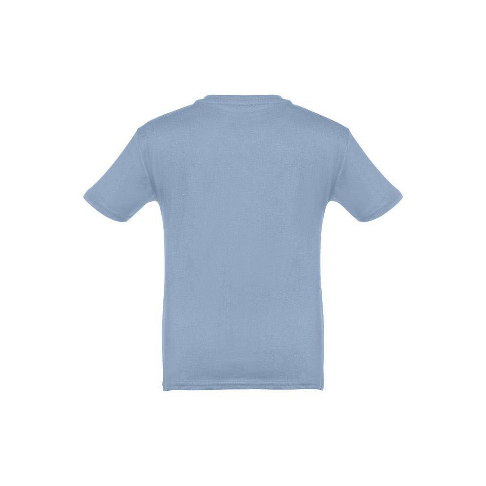 T-shirt dziecięcy (unisex) ze 100% bawełnianego dżerseju zgrzebnego (150 g/m²). Posiada 1x1 prążkowany kołnierzyk ze wzmacniającą tasiemką dżersejową. Zszywany po bokach, z podwójnym ściegiem na rękawach i na dole. Rozmiary: 2, 4, 6, 8, 10, 12