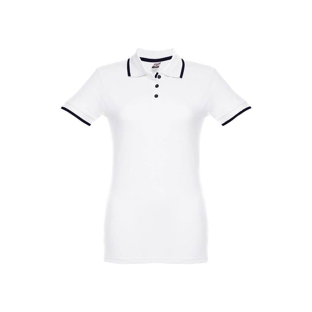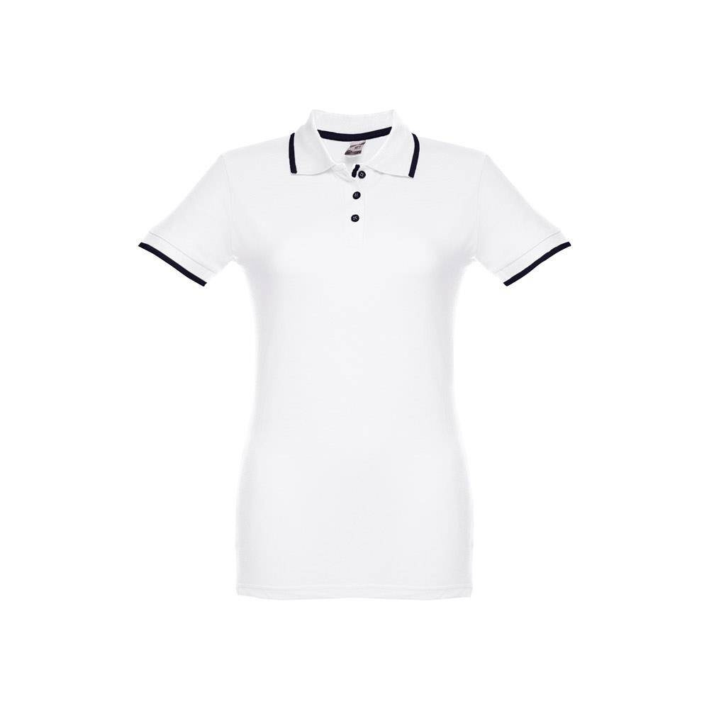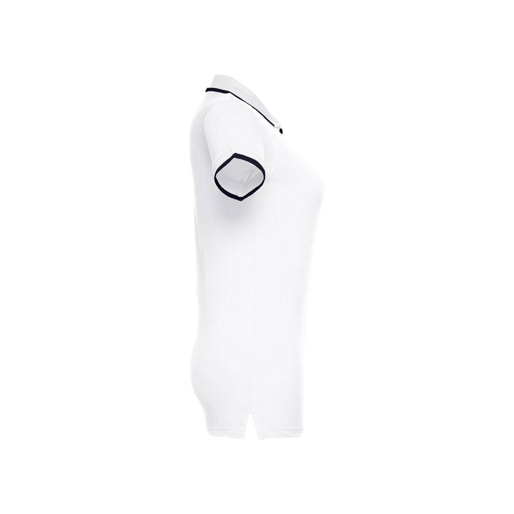 Damska dwukolorowa koszulka polo z krótkim rękawem, wykonana w 100% z bawełny zgrzebnej typu pique (210 g/m²). Dwukolorowy kontrast na kołnierzu, rękawie i plisie. Posiada prążkowane mankiety i kołnierz. Wzmocniona plisa z 3 kontrastującymi kolorami guzików (dodatkowy guzik umieszczony w wewnętrznym szwie bocznym). Dopasowana talia i małe boczne rozcięcia na dole. Rozmiary: S, M, L, XL, XXL