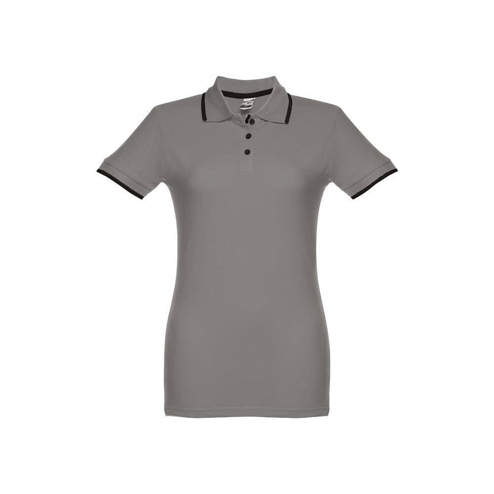 Damska dwukolorowa koszulka polo z krótkim rękawem, wykonana w 100% z bawełny zgrzebnej typu pique (210 g/m²) (kolor 183: 85% bawełna/15% wiskoza). Dwukolorowy kontrast na kołnierzu, rękawie i plisie. Posiada prążkowane mankiety i kołnierz. Wzmocniona plisa z 3 kontrastującymi kolorami guzików (dodatkowy guzik umieszczony w wewnętrznym szwie bocznym). Dopasowana talia i małe boczne rozcięcia na dole. Rozmiary: S, M, L, XL, XXL