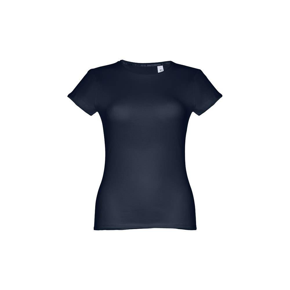 T-shirt damski o dopasowanym kroju ze 100% bawełnianego jerseyu (150 g/m²) z przędzą bawełnianą (kolor 183: 90% bawełna/10% wiskoza). Ma cienki kołnierz z podwójnej dzianiny wzmocniony satynową taśmą lamówką. Skrojona i zszyta odzież z podwójnym szwem na rękawach i u dołu. Rozmiar: 3XL