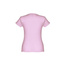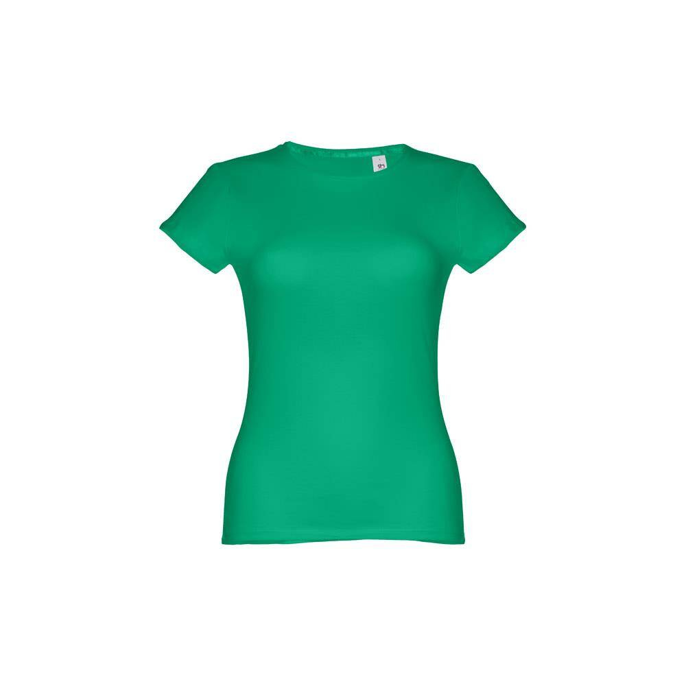 T-shirt damski o dopasowanym kroju ze 100% bawełnianego jerseyu (150 g/m²) z przędzą bawełnianą (kolor 183: 90% bawełna/10% wiskoza). Ma cienki kołnierz z podwójnej dzianiny wzmocniony satynową taśmą lamówką. Skrojona i zszyta odzież z podwójnym szwem na rękawach i u dołu. Rozmiar: 3XL