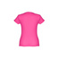 T-shirt damski o dopasowanym kroju ze 100% bawełnianej dzianiny jersey (150 g/m²) ze zgrzebną przędzą bawełnianą (kolor 183: 90% bawełna/10% wiskoza, kolor 196: 98% bawełna/2% wiskoza). Posiada cienki podwójny kołnierz z dżerseju wzmocniony satynową taśmą skośną. Skrojony i zszyty, z podwójnym szwem na rękawach i u dołu. Rozmiary: S, M, L, XL, XXL